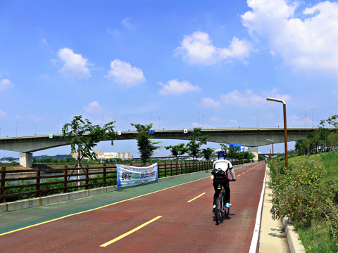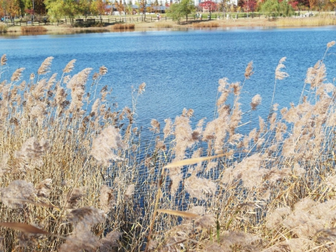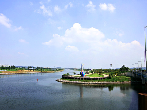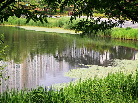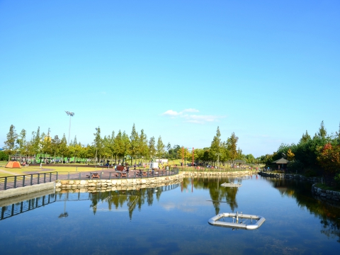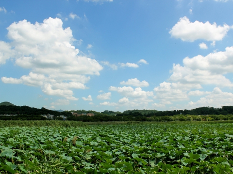 시원한 바람이 솔솔 불어오는 넓은 호수공원