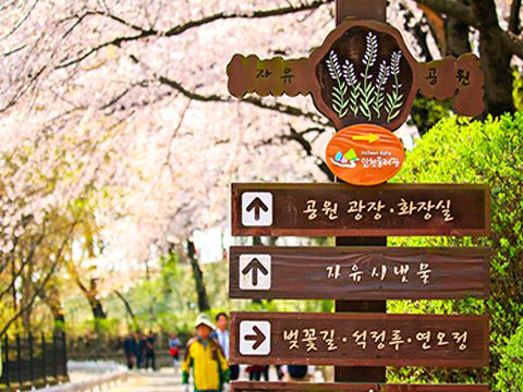 이곳은 봄이면 만개한 벚꽃들로 아름다운 자태를 뽐내는 자유공원입니다.