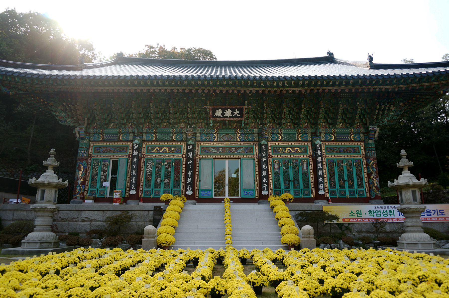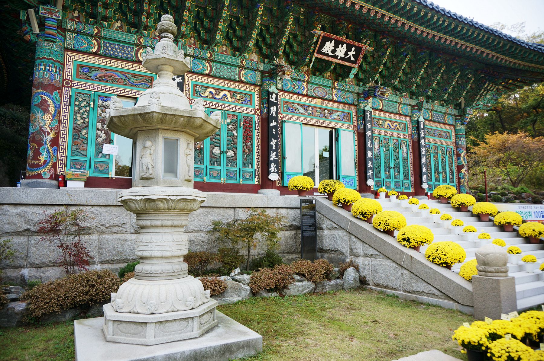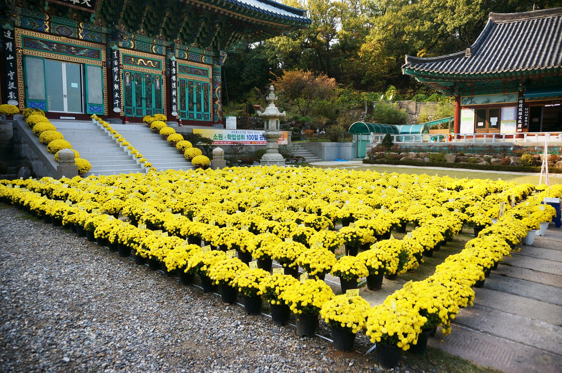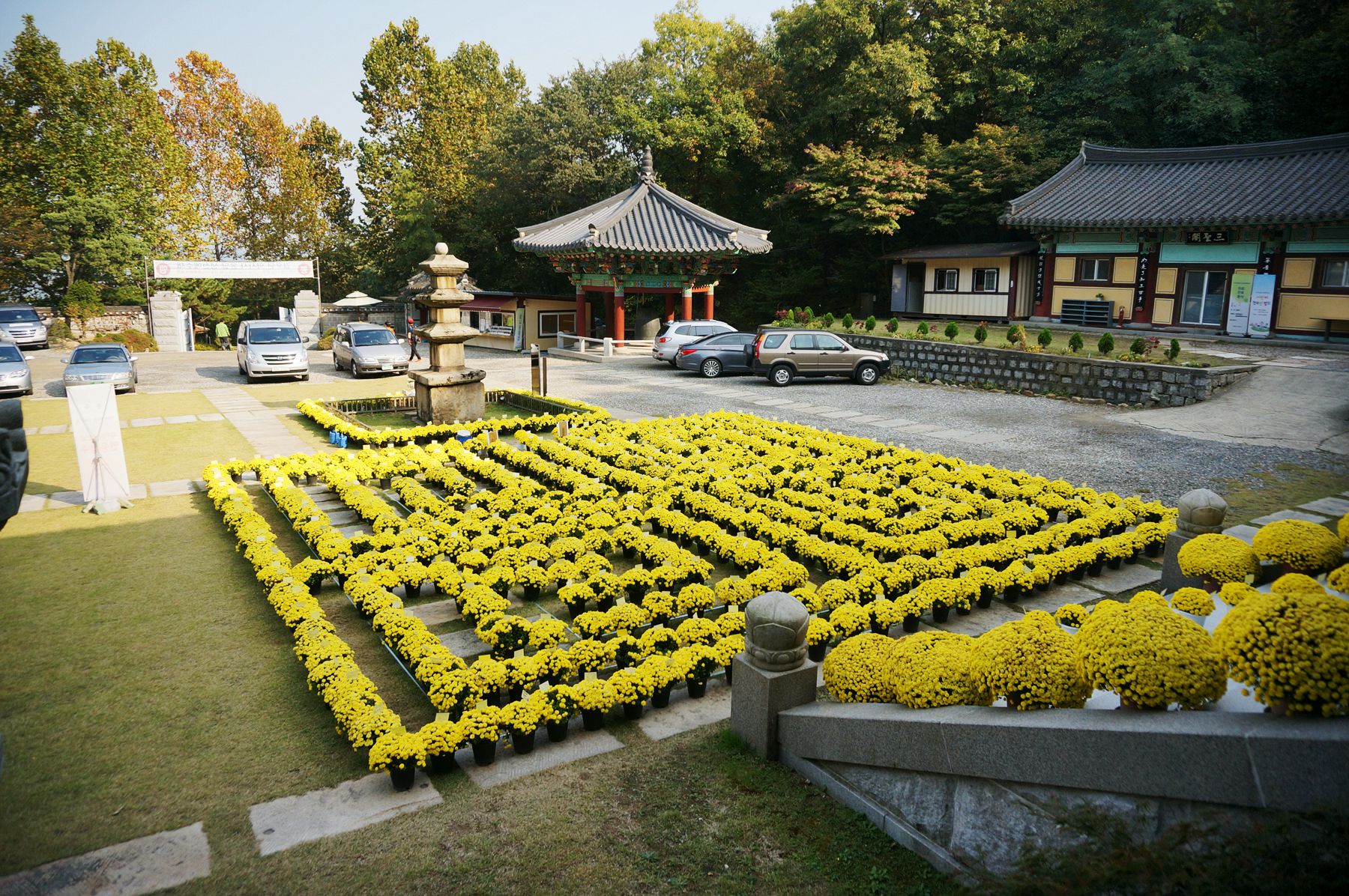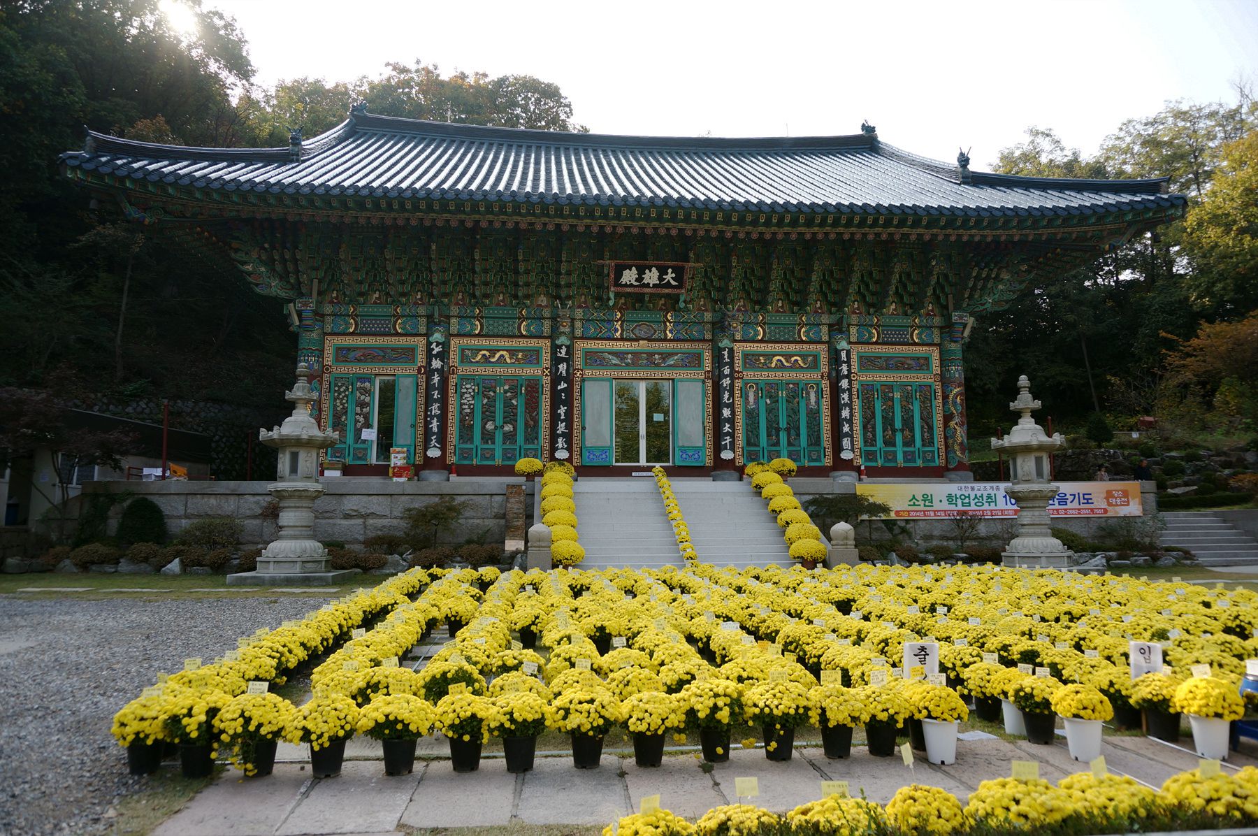 대웅전 앞에는 탐스런 국화 화분으로 법성도로 길을 만들어 놓았습니다.