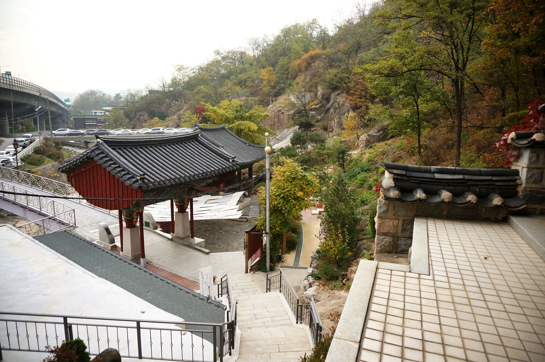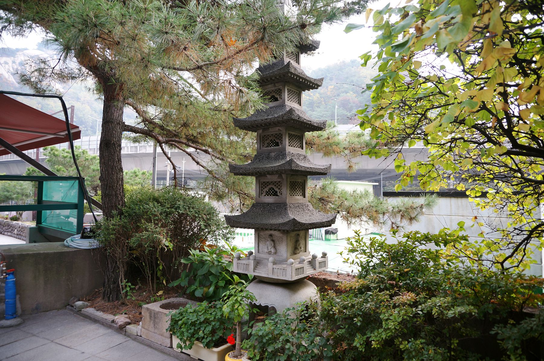 암석으로 둘러싸인 산에 위치한 사찰이라 경내에 계단이 많은 것이 특징입니다.