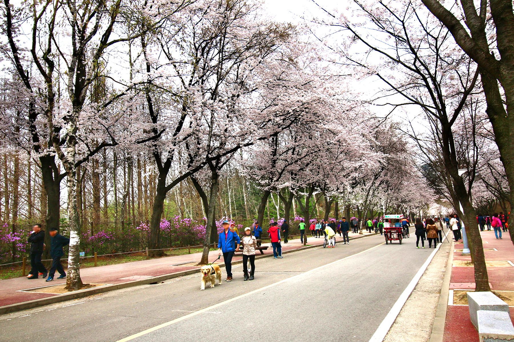 특별한 벚꽃을 만날 수 있는 남문에는 30년 이상 된 벚꽃나무 600여그루가 늘어선 벚꽃길이 있습니다.