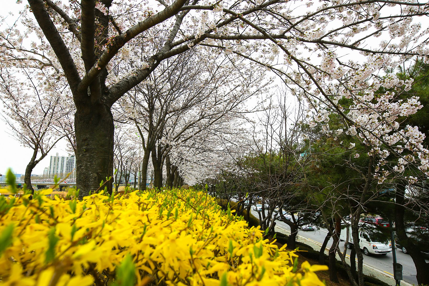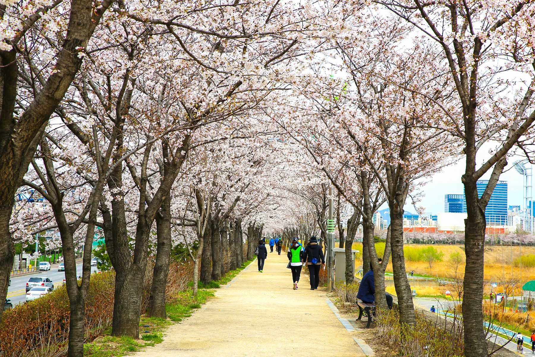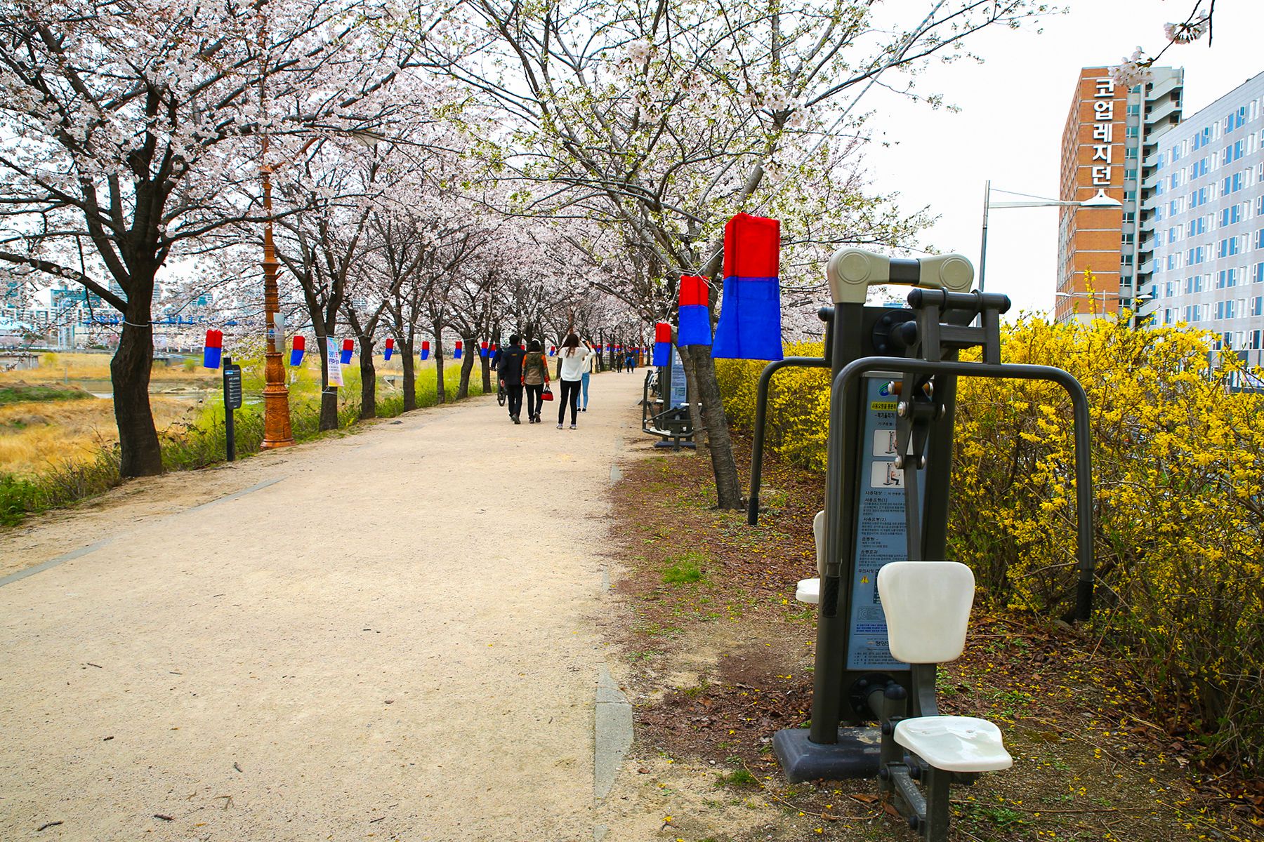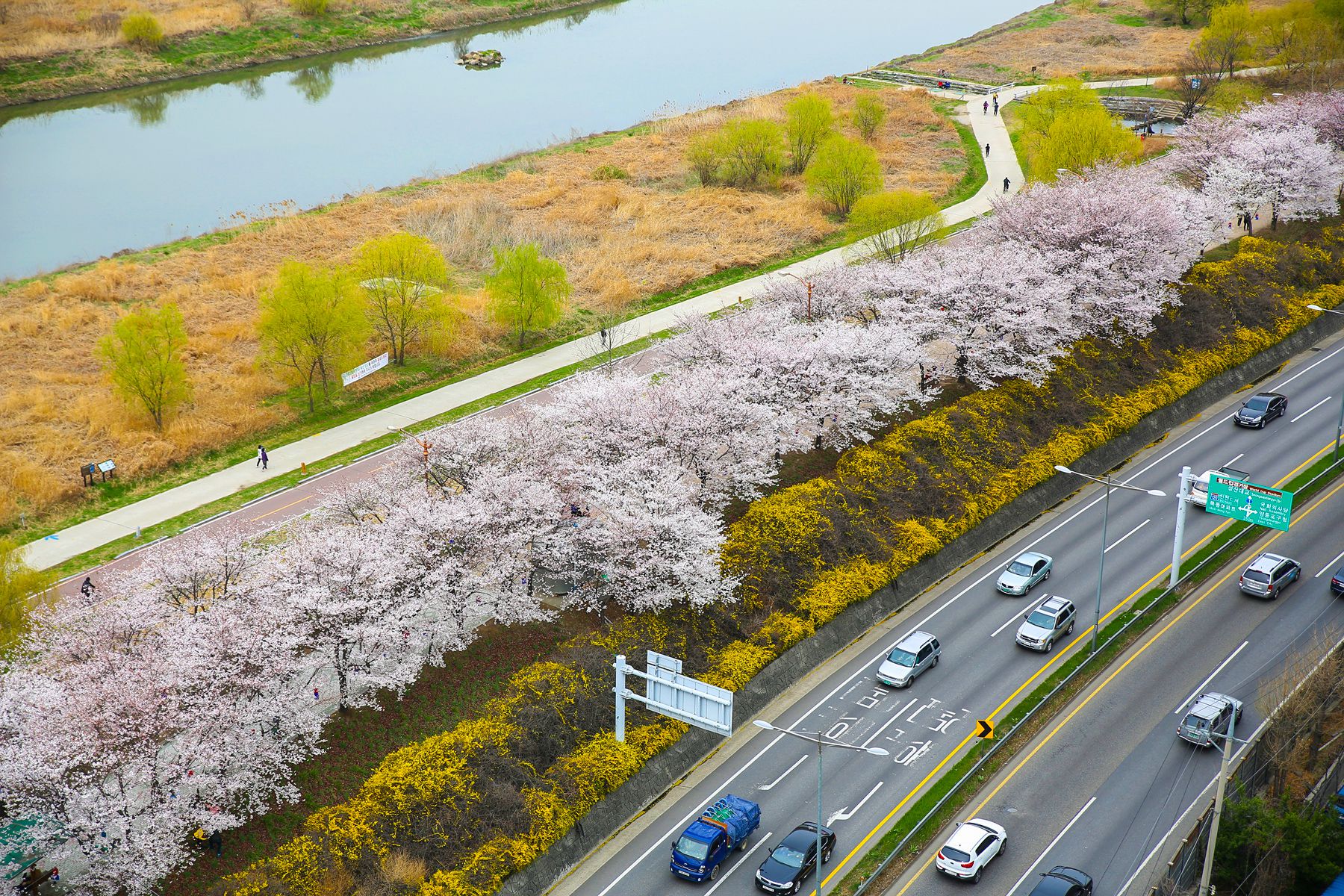 활짝 핀 벚꽃과 개나리 등 봄꽃을 구경하며 걸으며 산책하기에 딱 좋을 장소입니다.