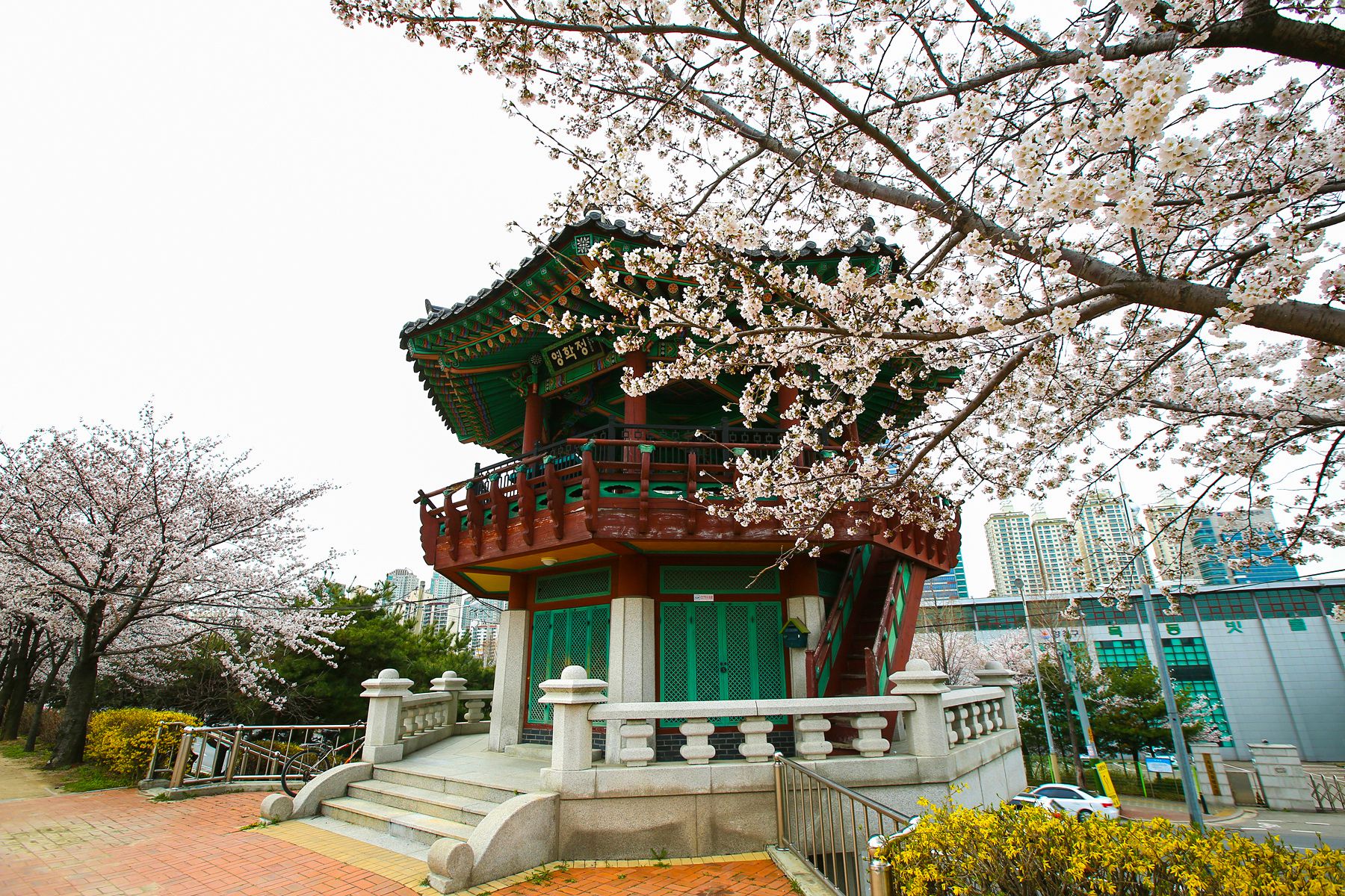 중간쯤에 마주치는 영화정에 오르시면 벚꽃과 개나리 등 다양한 봄꽃이 가득 핀