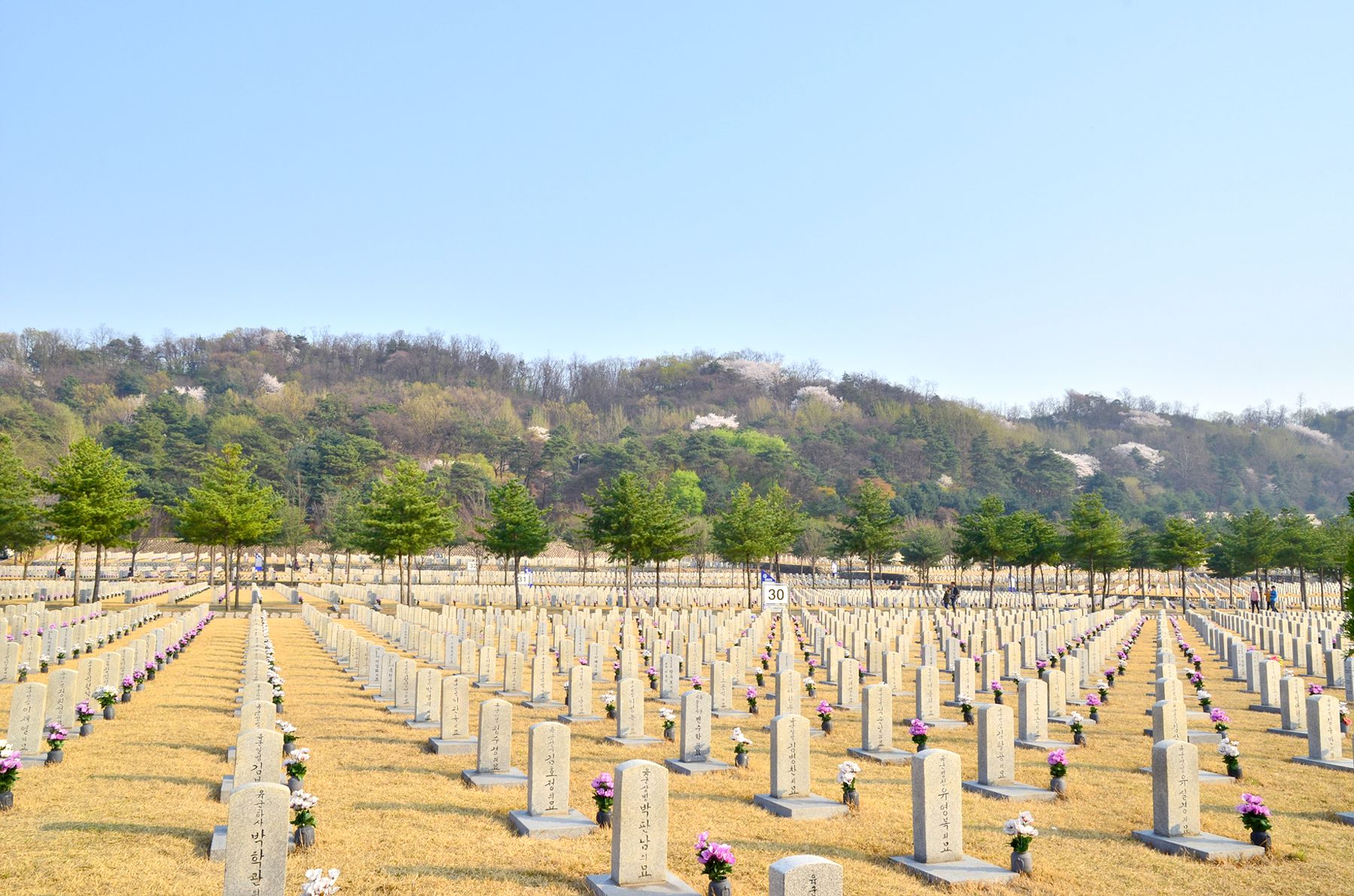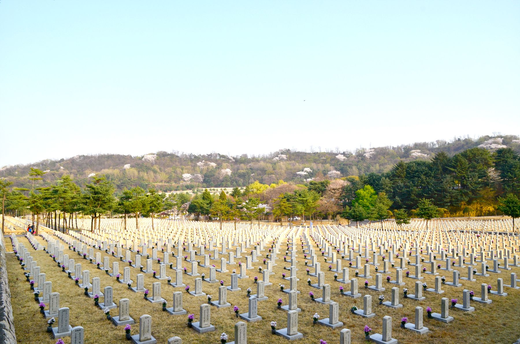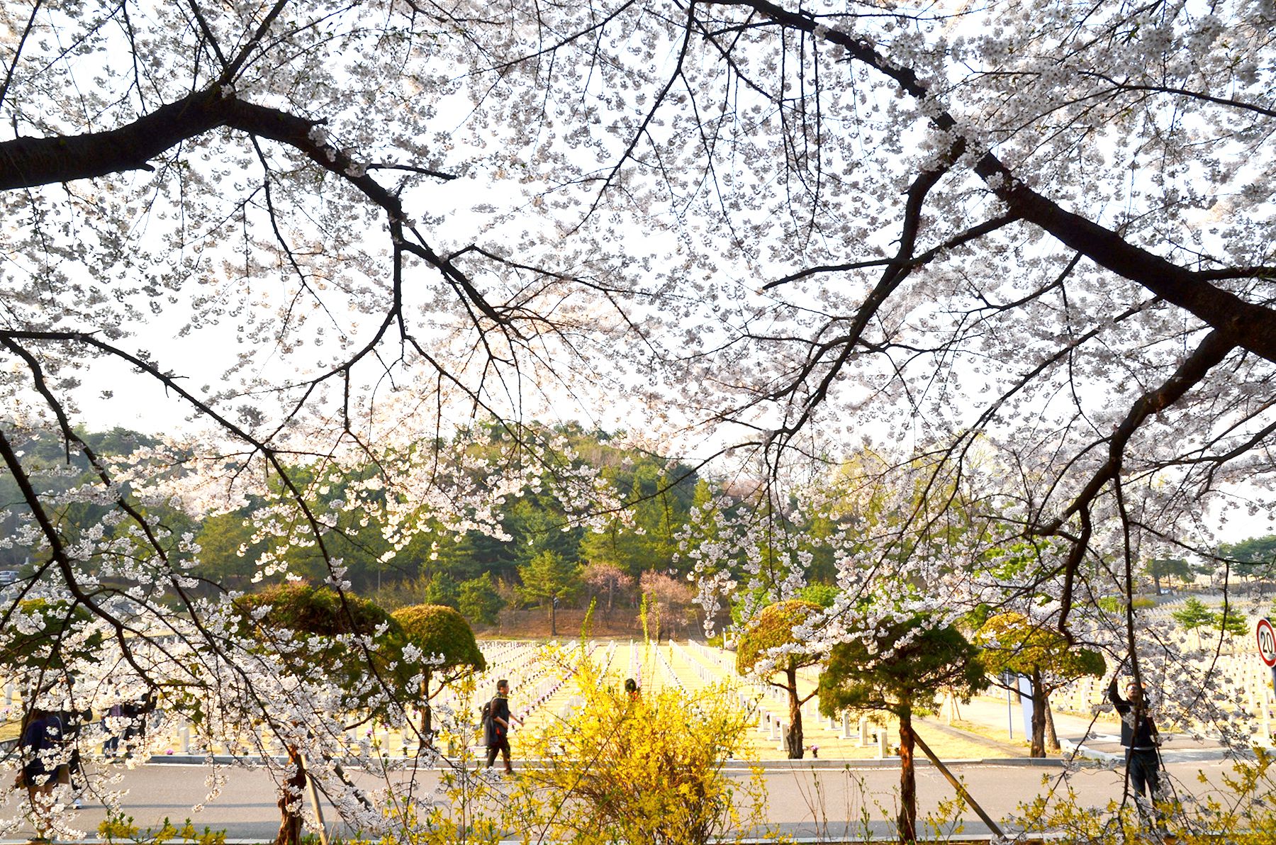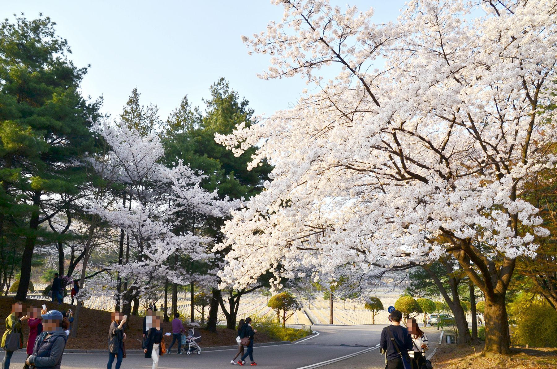 4월의 서울에는 벚꽃으로 물든 유명한 길들이 많지만, 특별한 벚꽃을 만나고 싶다면 국립 서울 현충원을 추천합니다.