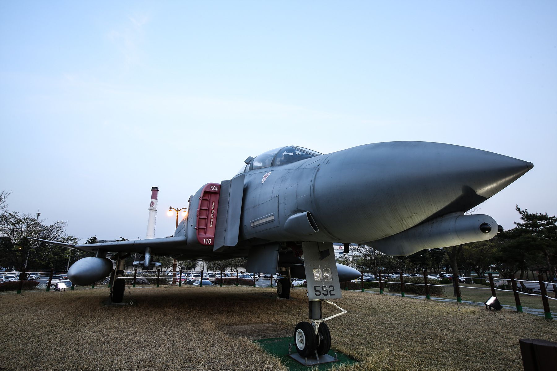 구미과학관 앞에는 한국전쟁 때 사용되었던 탱크, 전차, 전투기가 전시되어 있습니다.
