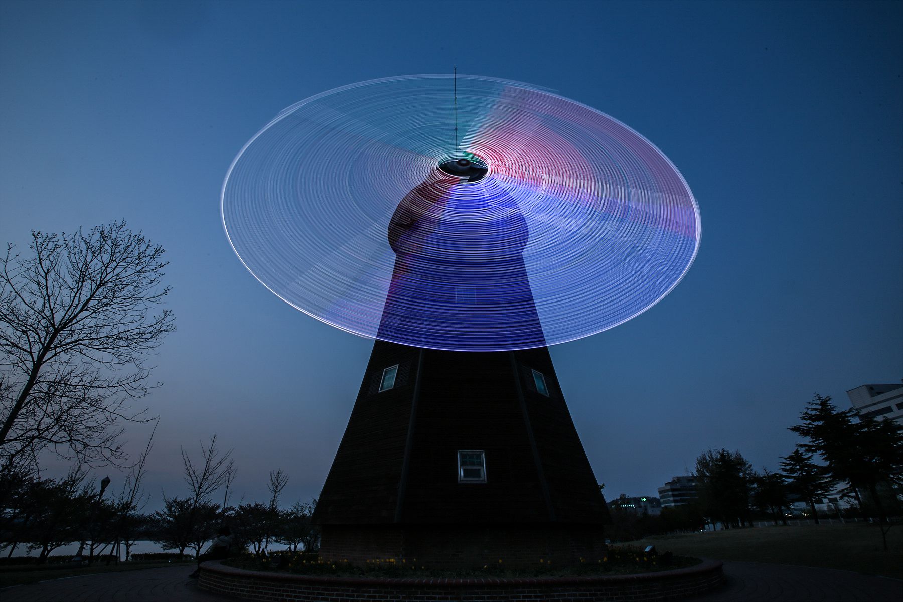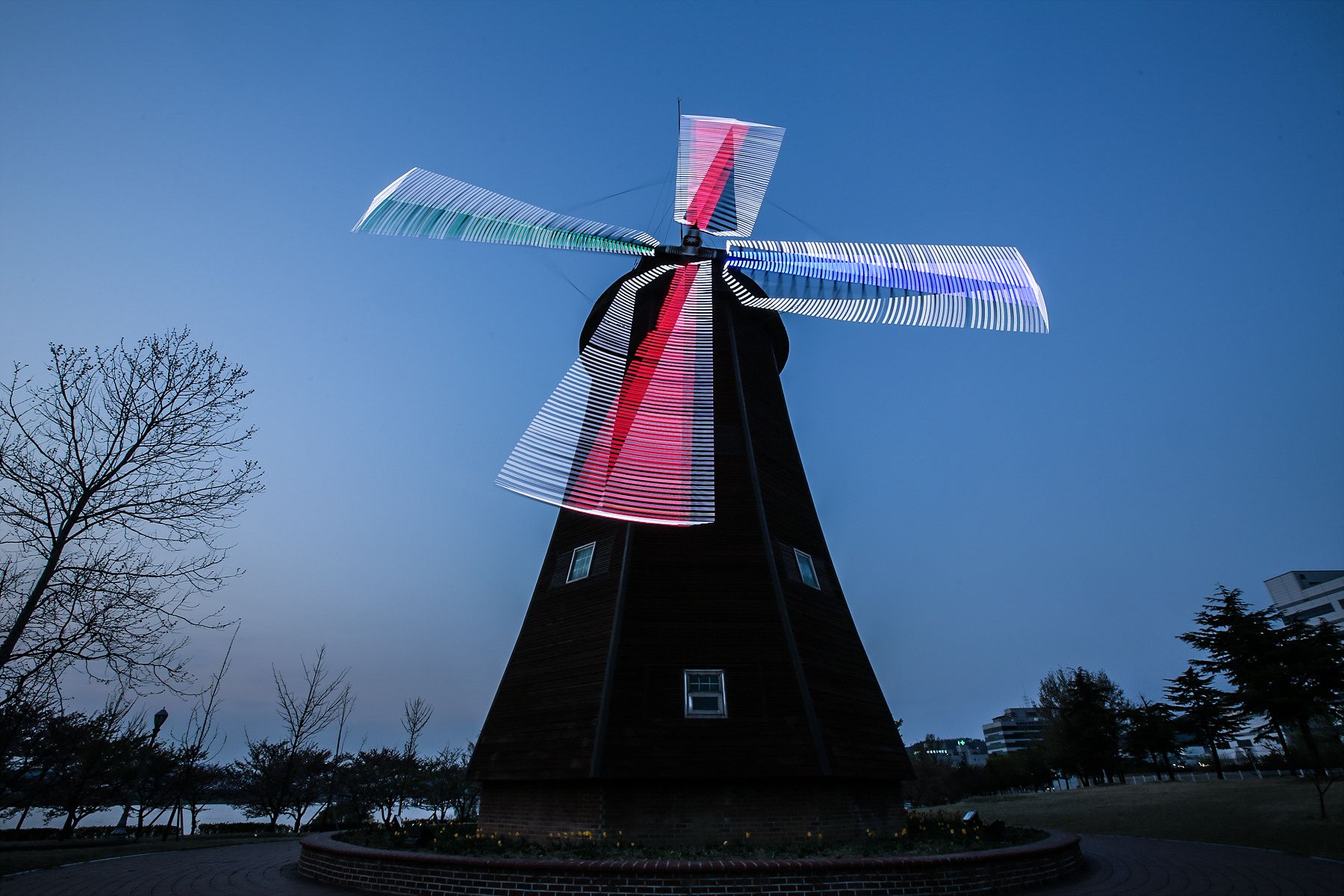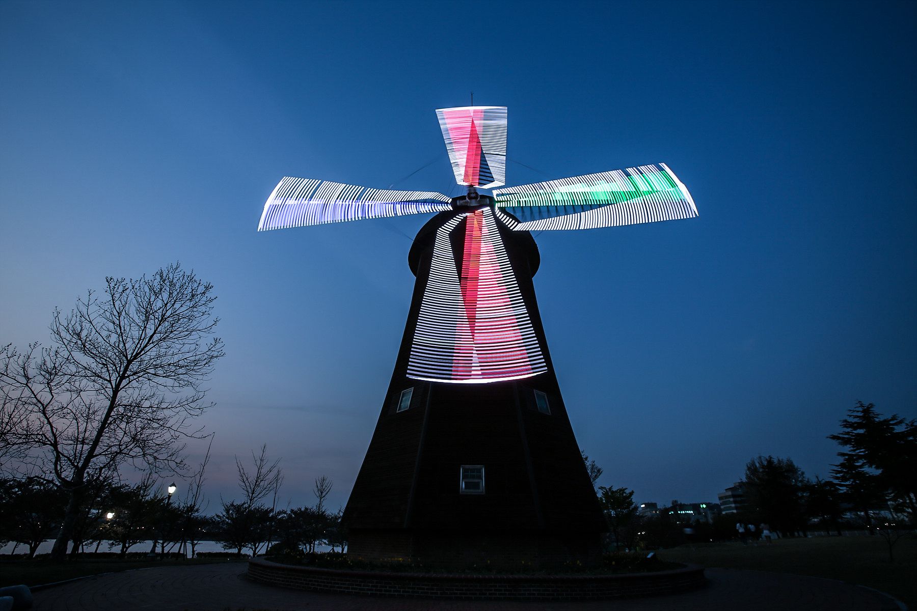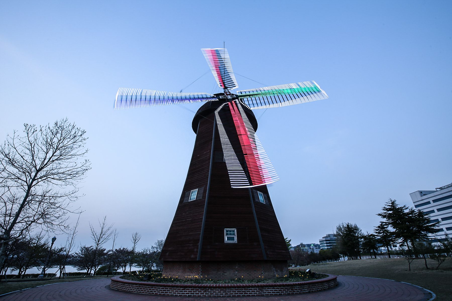 해가 지기 시작하면 풍차에 오색빛의 조명이 들어오고 풍차가 돌아가기 시작합니다.