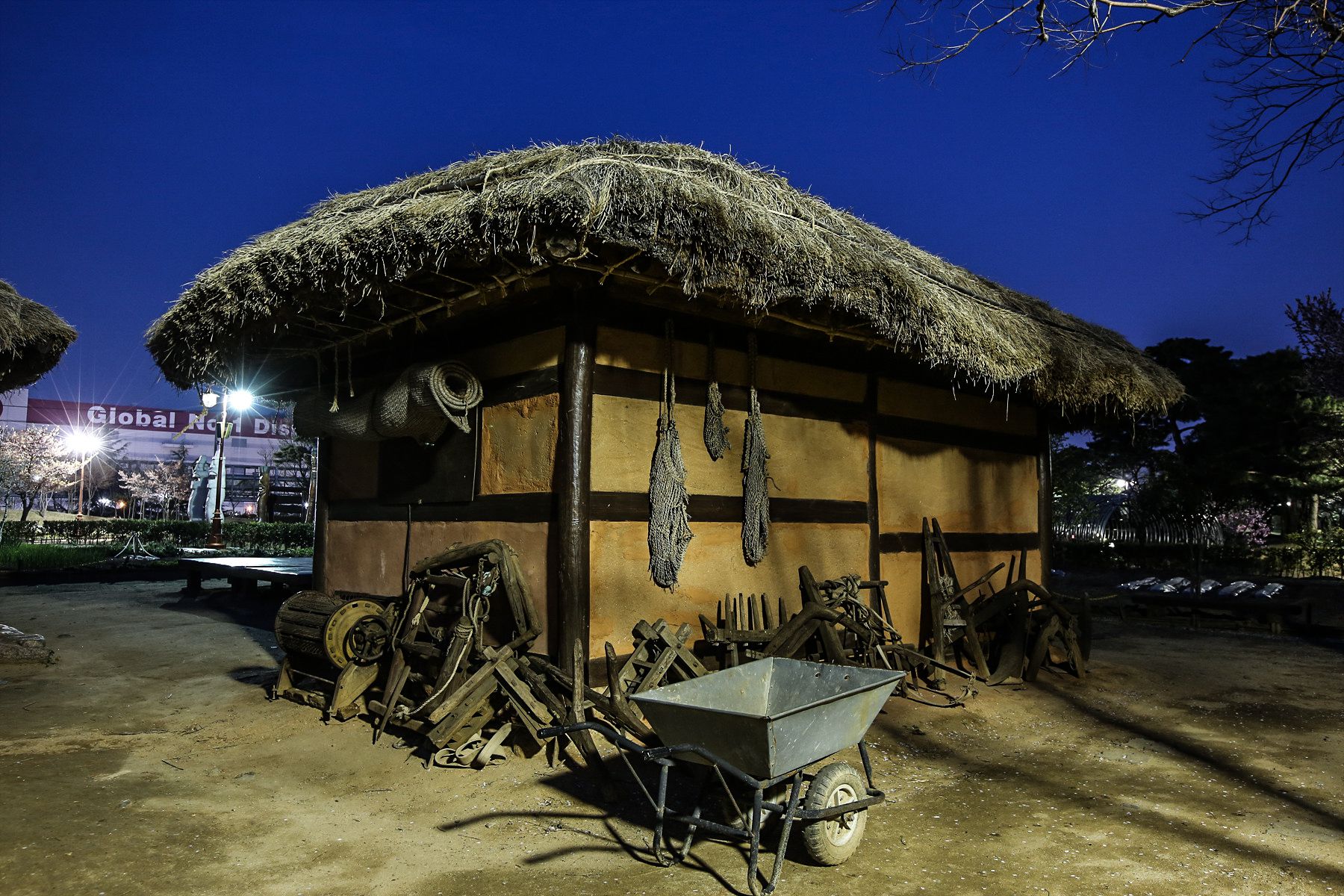 초가집, 연못, 물레방앗간 및 방아, 원두막, 조청, 그네, 널뛰기, 상징문, 텃밭, 민속공예품, 넝쿨 등이 조성되어있고,