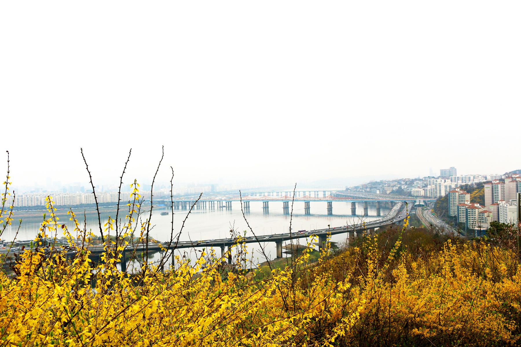 따뜻한 햇살과 함께 봄소식을 알려주는 노오란 개나리! 강변북로를 따라 출퇴근하시는 분들이라면