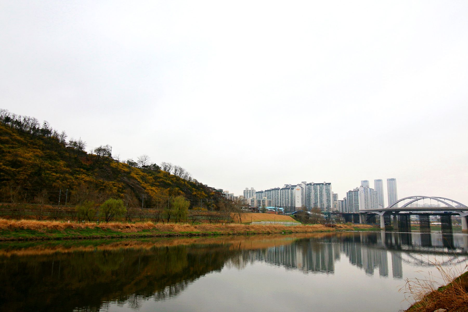 응본산에서 내려와 중랑천변에서 바라 본 응봉산도 정말 멋지지 않나요?
