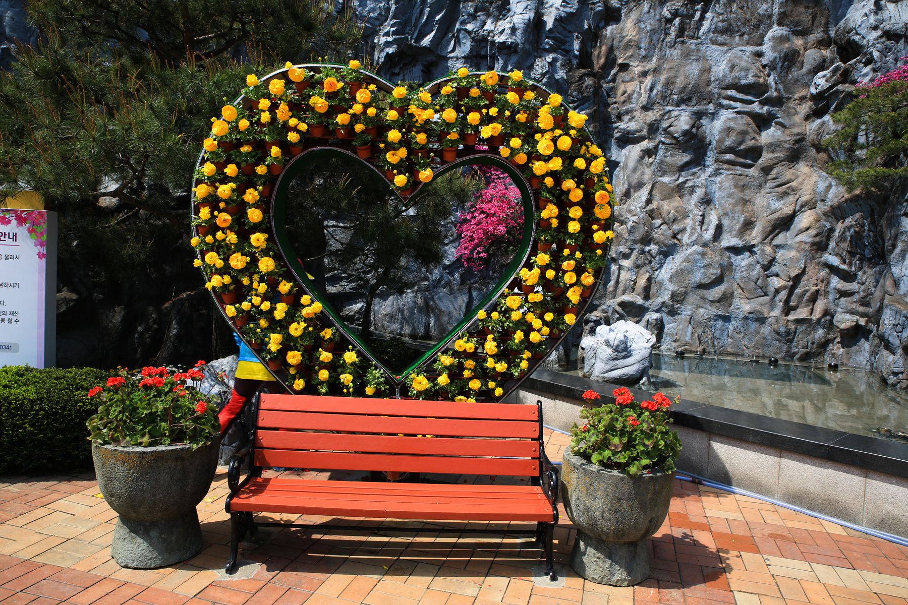 인공폭포를 배경으로 포토존이 조성되어 있습니다.