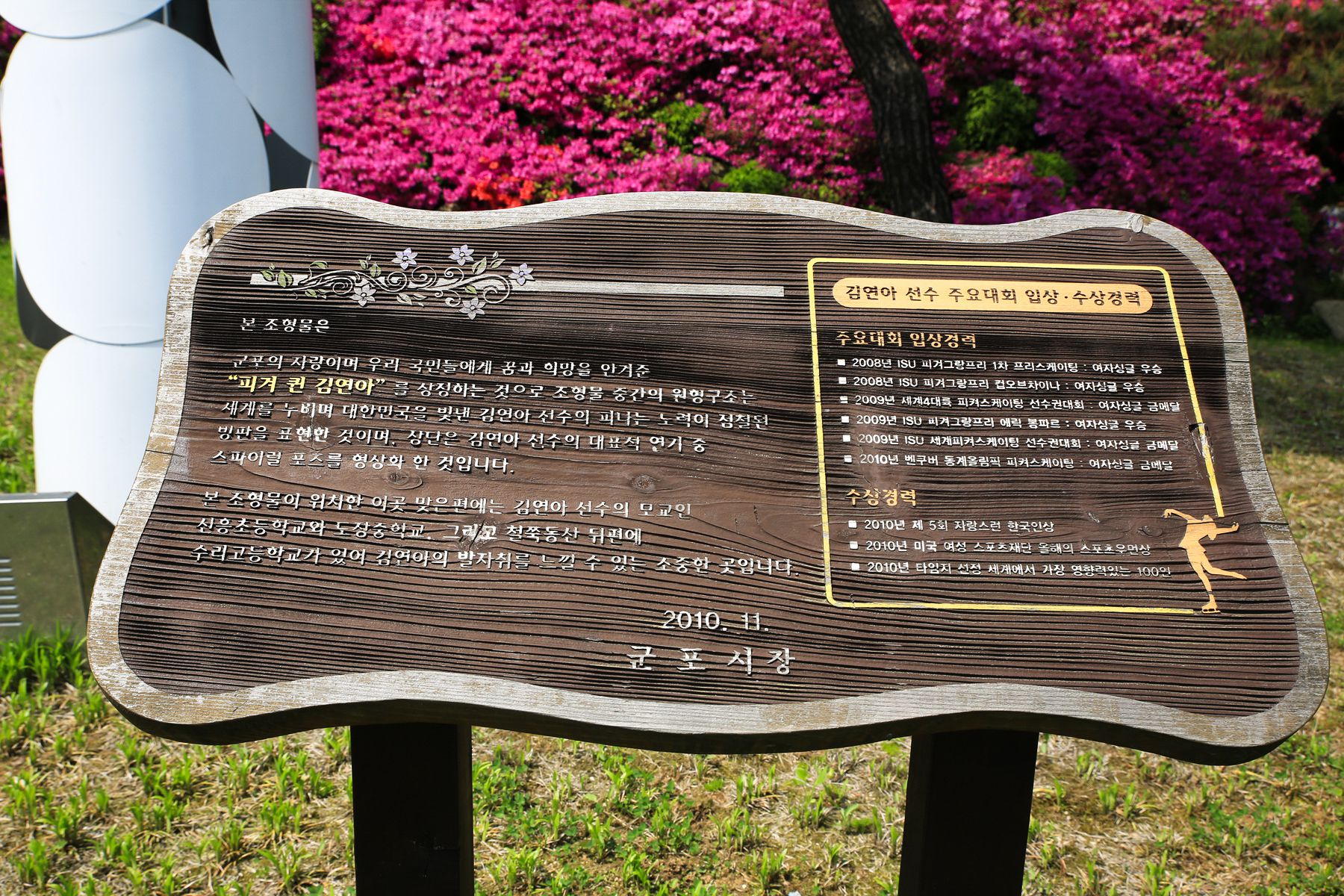 군포의 자랑 피겨 퀸 김연아 선수를 상징하는 조형물이 설치되어 있습니다.