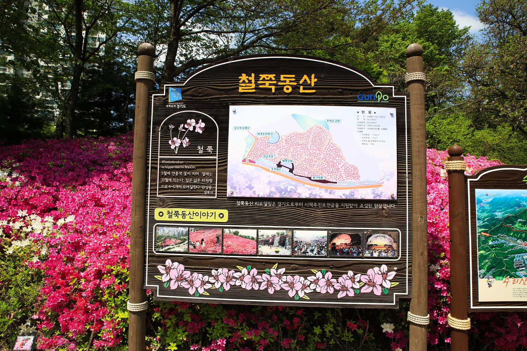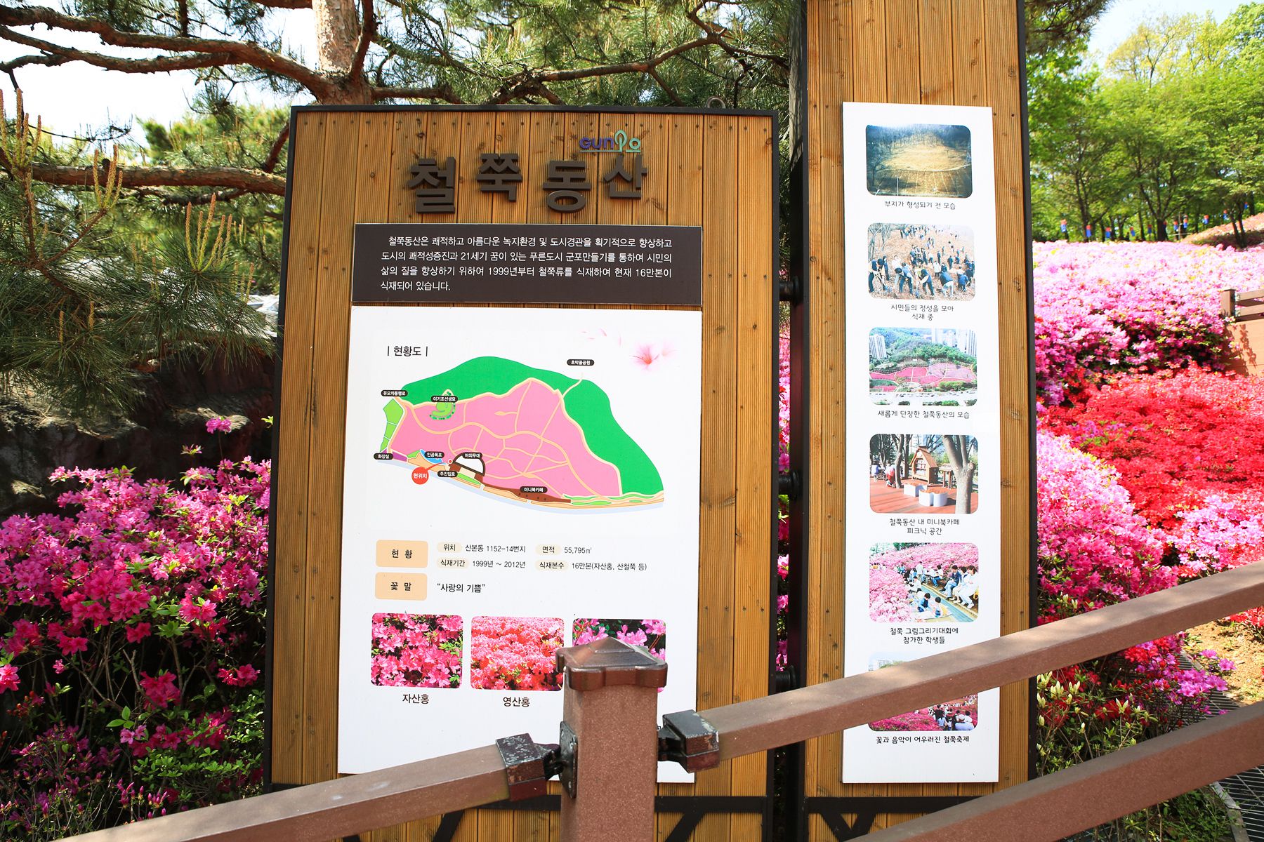 철쭉동산엔 자산홍, 영산홍, 산철쭉, 백철쭉, 참나리, 벌개미취 등, 약 10만여 그루의 철쭉이 심어져 있습니다.