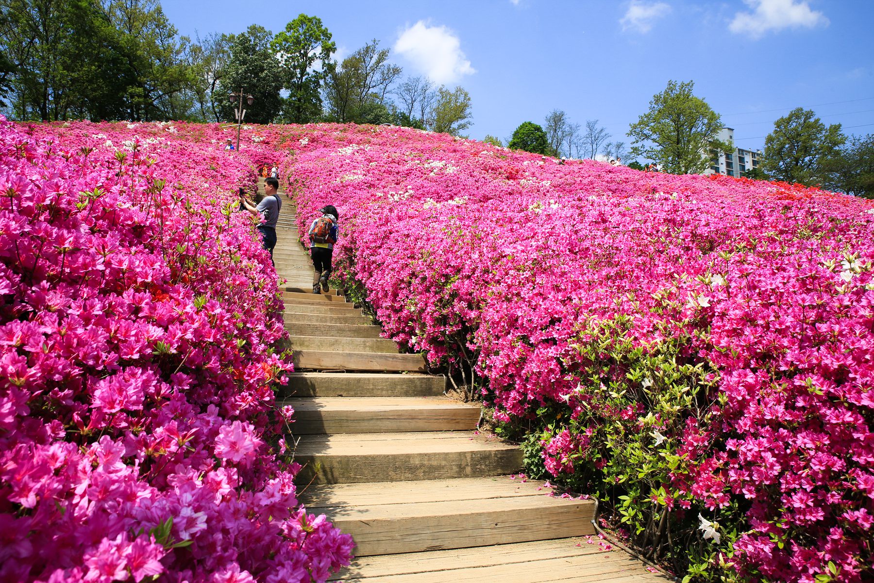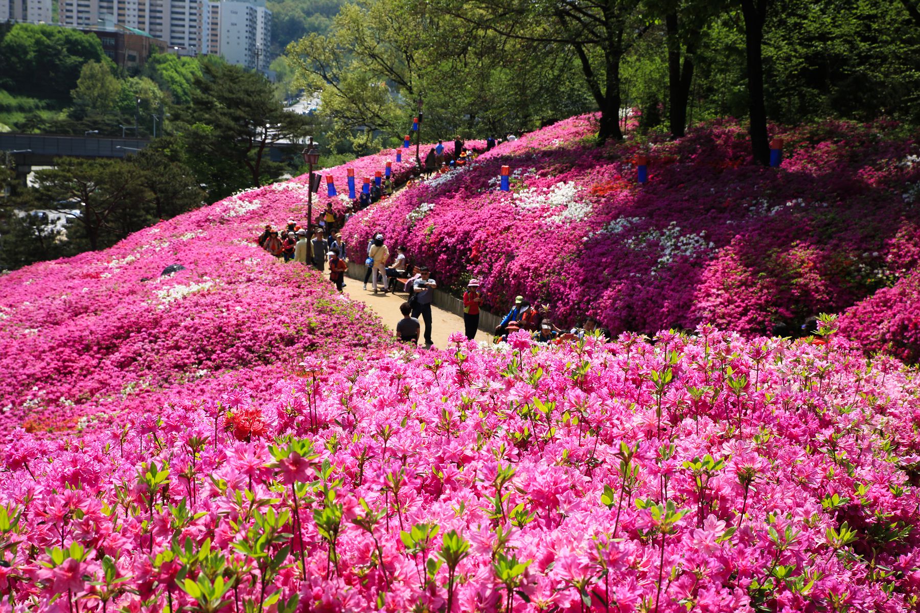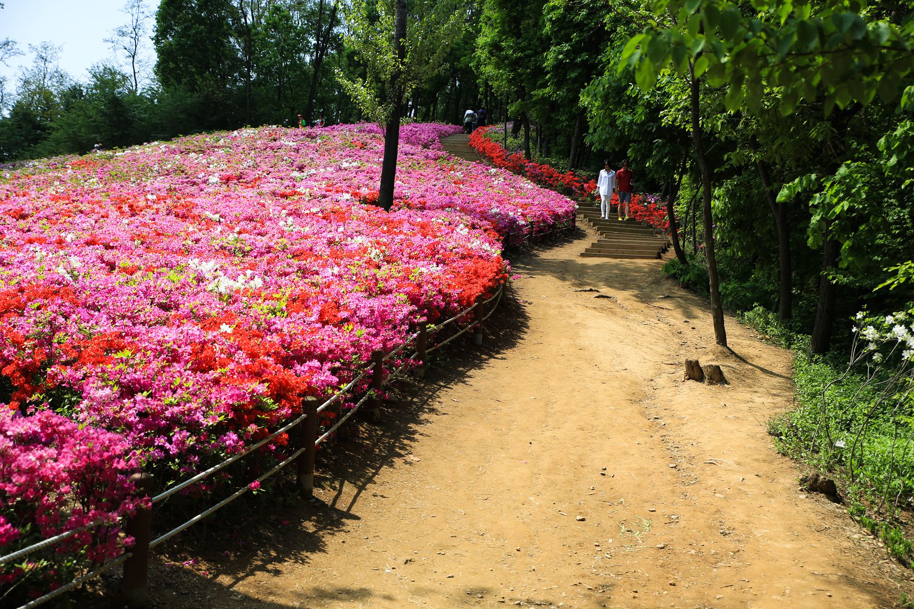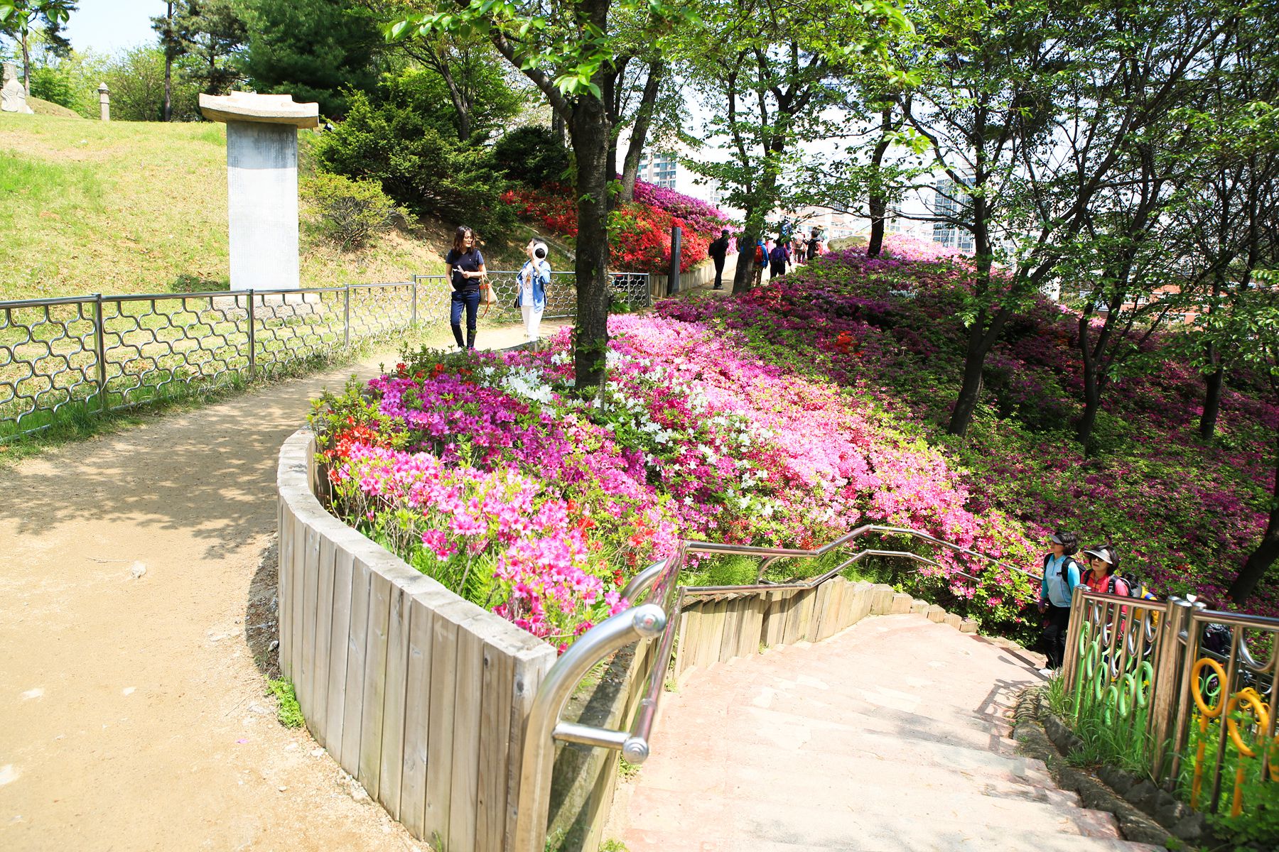 만개한 철쭉동산 사이사이에 오솔길과 산책로가 조성되어 있습니다.