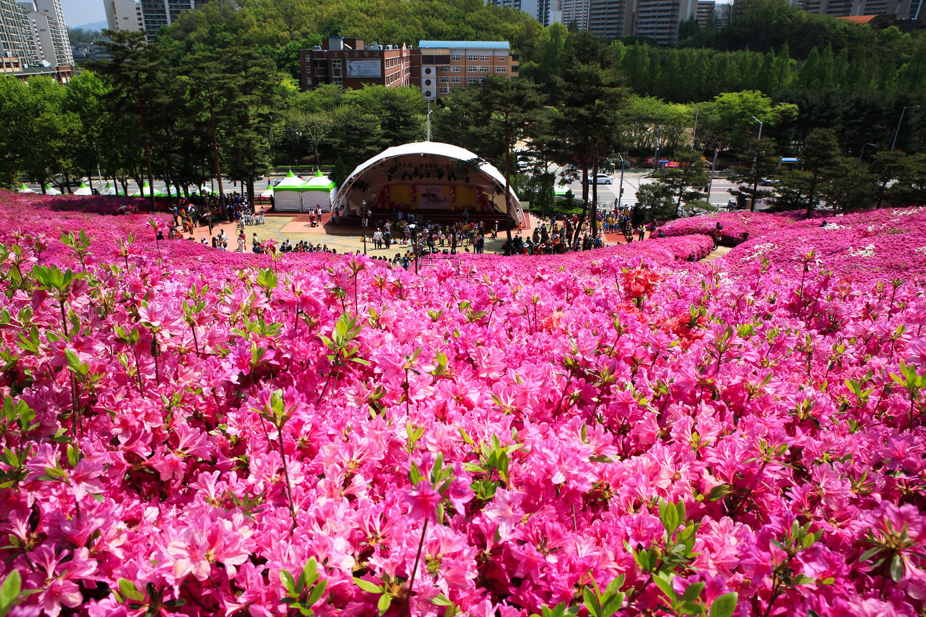 수리산 등산로와 이어져 있는 작은 언덕에 철쭉이 약 10만 그루가 심어져 있어서
