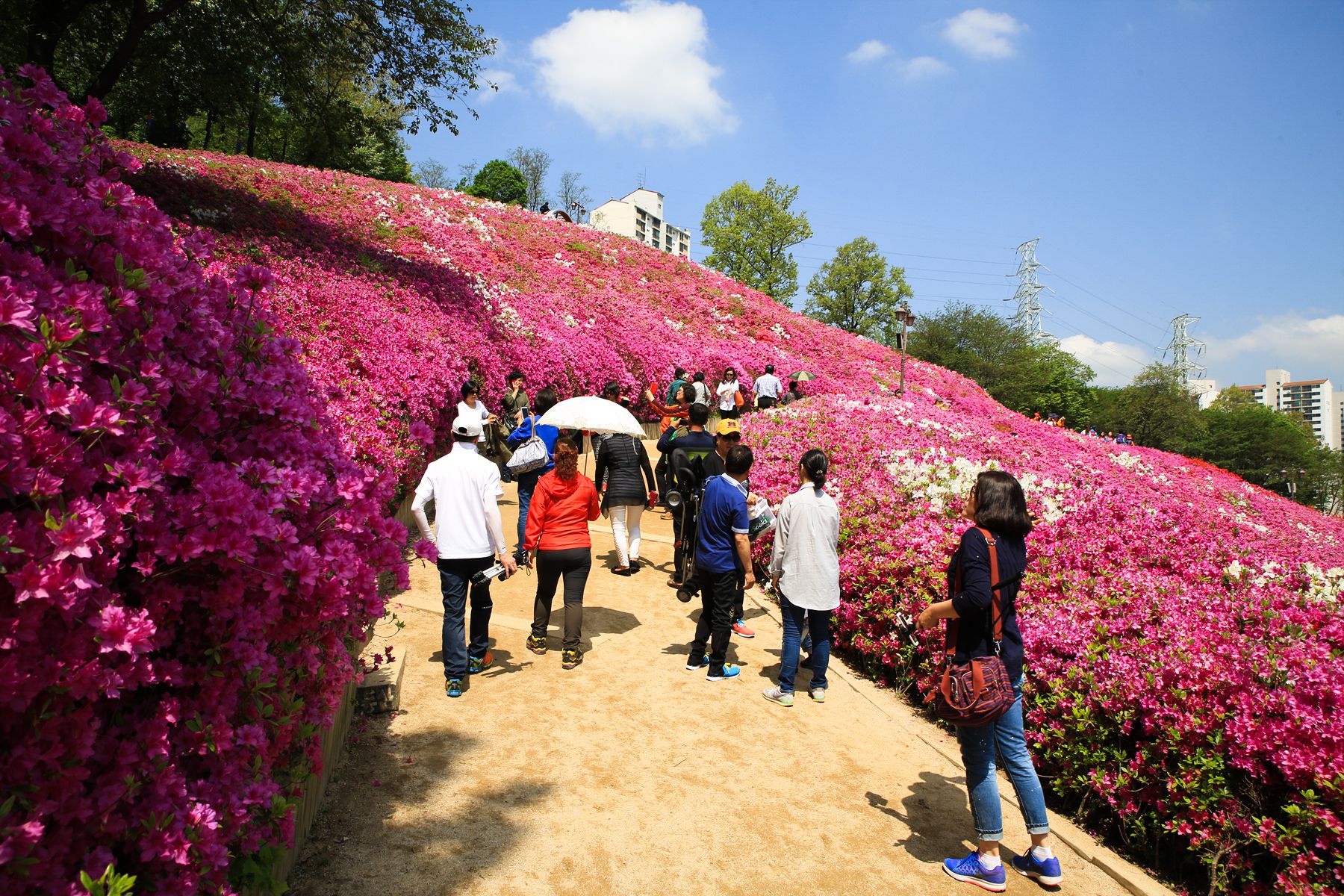 예쁜 철쭉이 만개한 철쭉동산에서 기분 좋은 꽃내음을 맡으며 산책도 하고