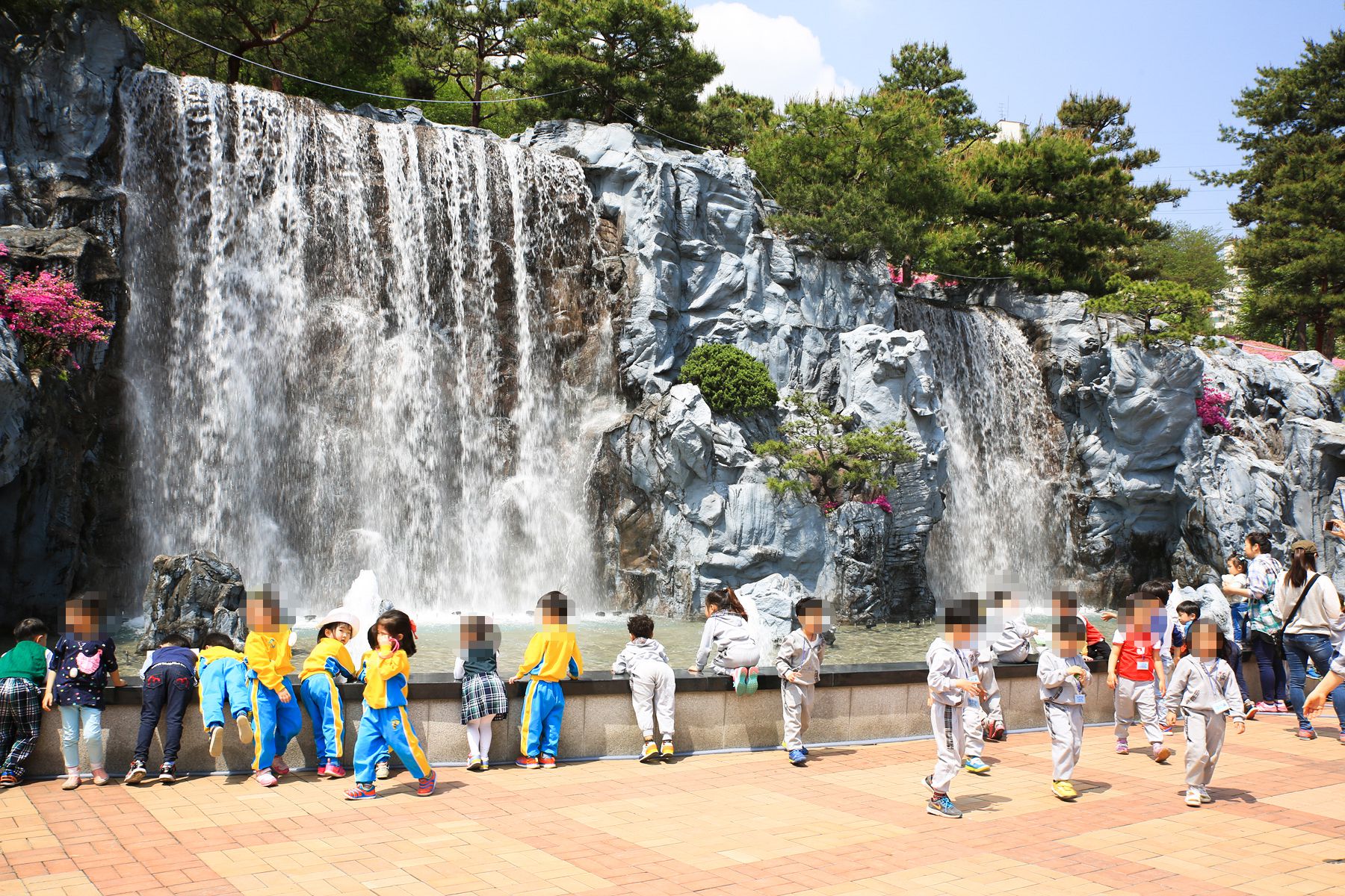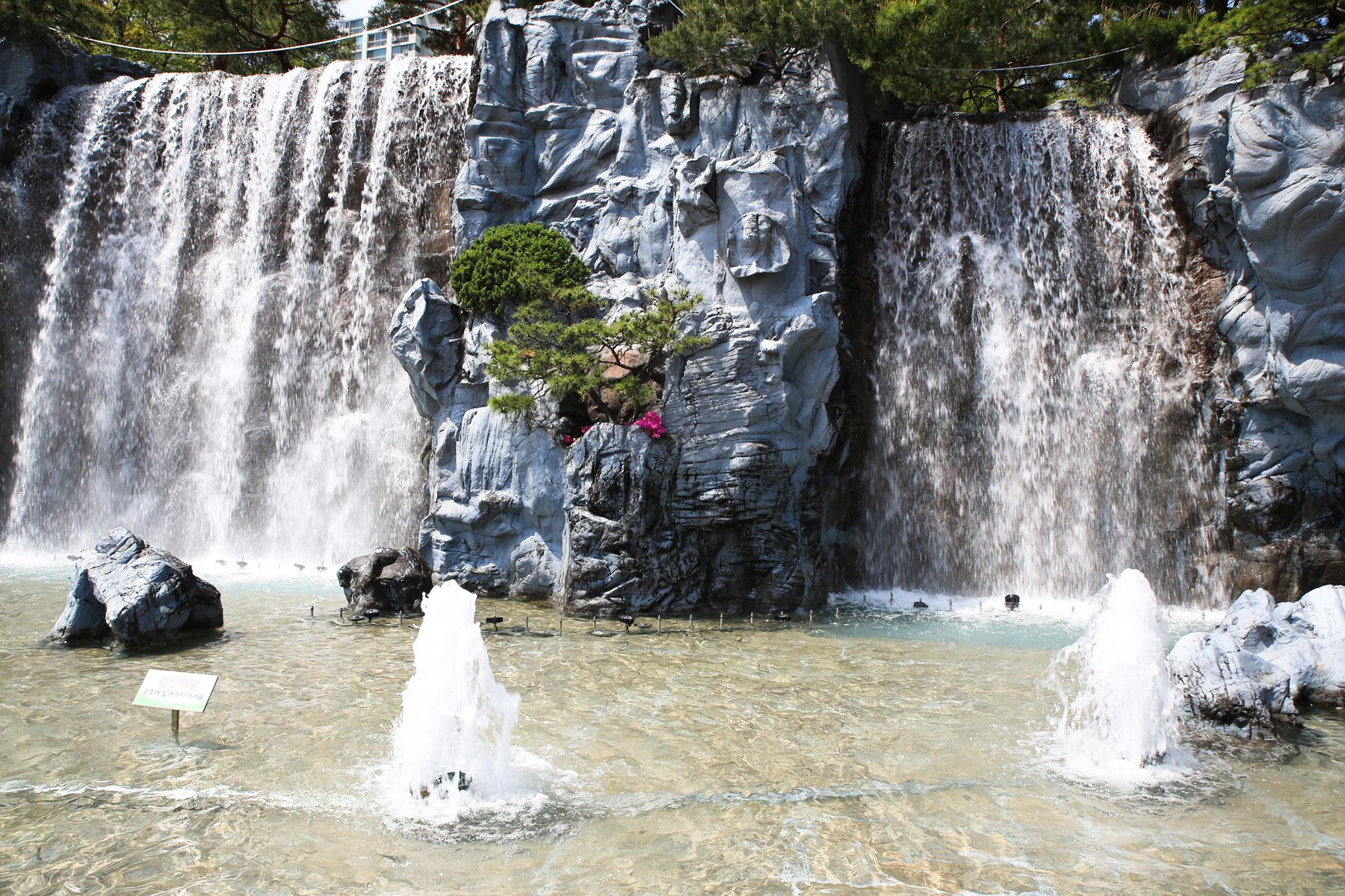 철쭉동산 입구에는 시원한 인공폭포가 설치되어 있어요.