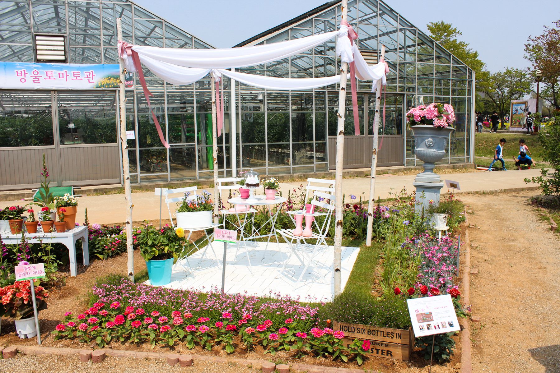 분수대 앞쪽으로 마련된 방울토마토관과 꽃전시관에서는 다양한 품종들을 한꺼번에 만날 수 있습니다.