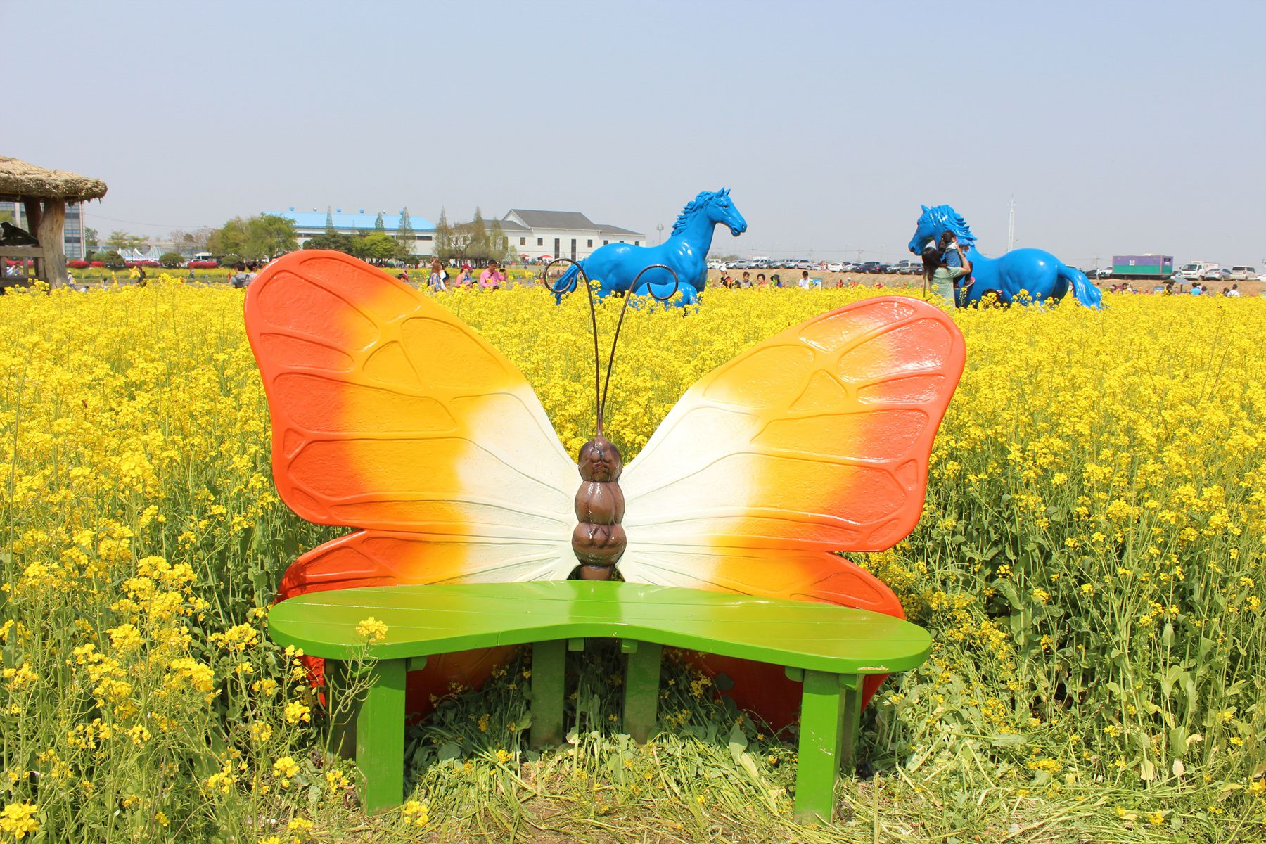 나비의자는 자신과 닮은 유치꽃밭 앞에서 만날 수 있습니다.