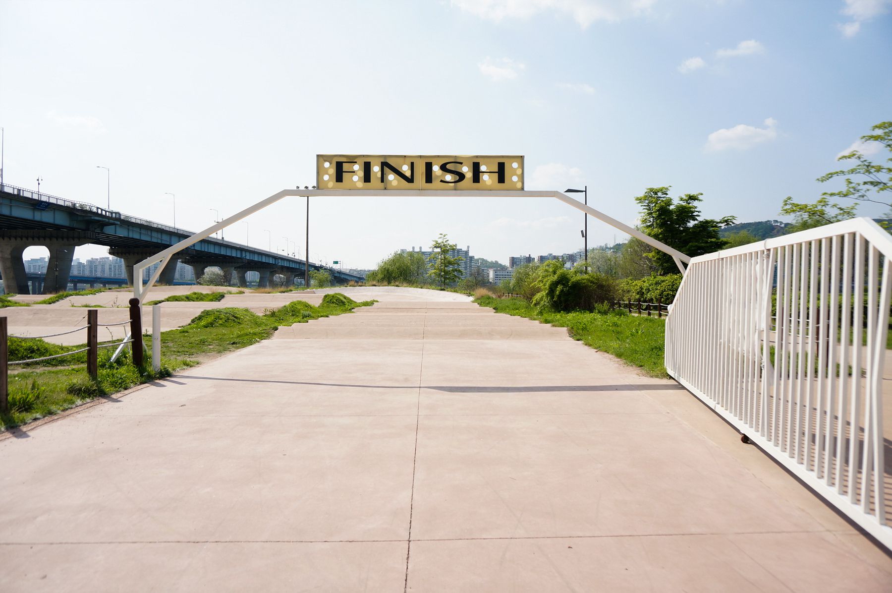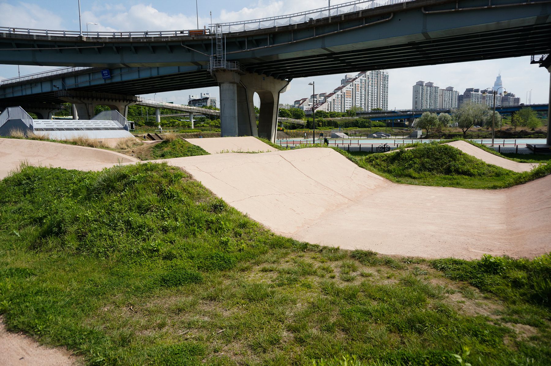 광나루한강공원 자전거 레이싱경기장은 산악자전거나 묘기자전거와 같은 특수자전거를 타고 도로와 장애물을 통과하는 방식으로