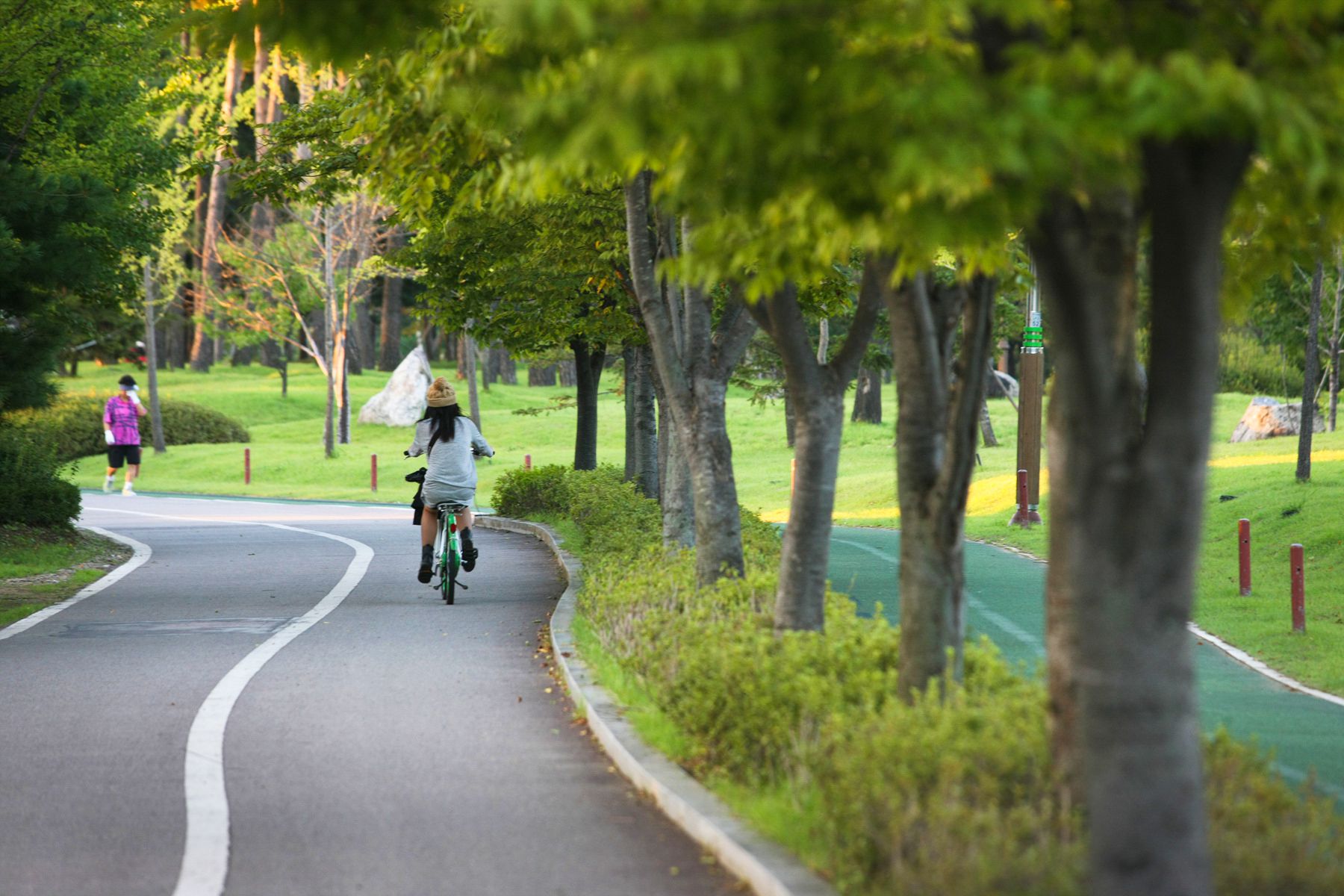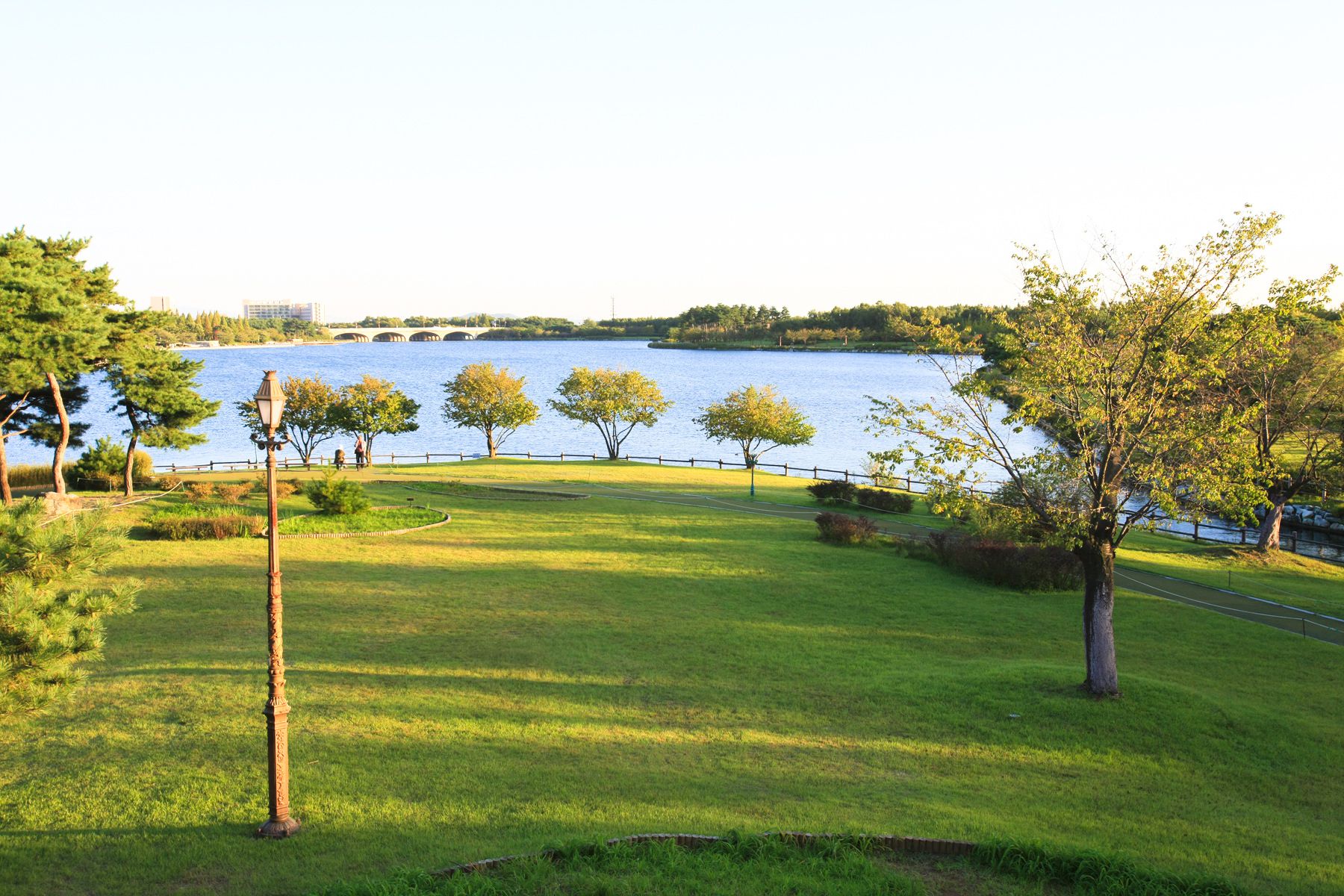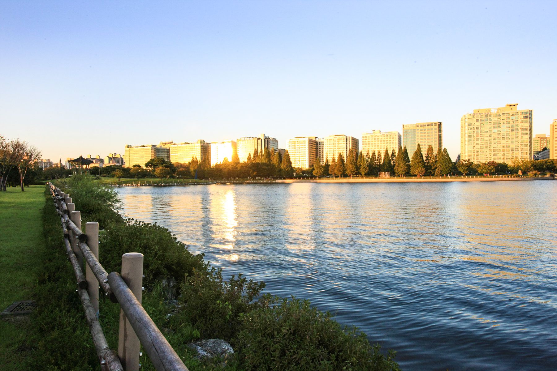 호수를 중심으로 약 4.7km의 자전거 도로를 갖춘 큰 규모의 호수공원은