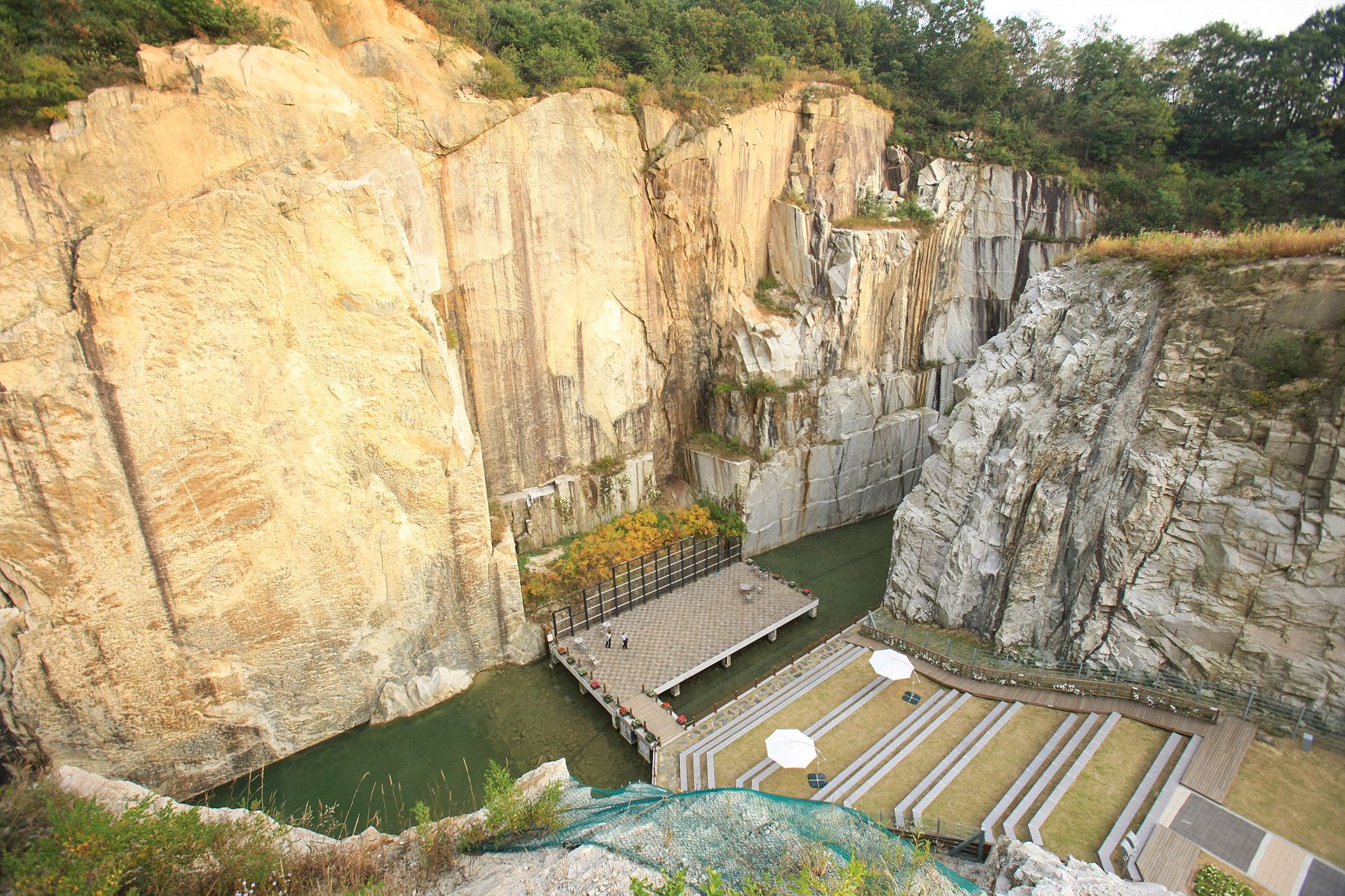 이곳은 폐채석장을 다시 구성해 문화와 예술의 복합적인 공간으로 재탄생키킨 포천아트밸리입니다.