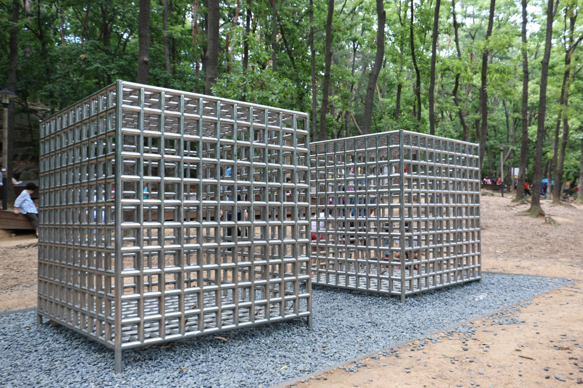 예술공원 주차장에 있는 '선으로 된 나무 위의 집'입니다.