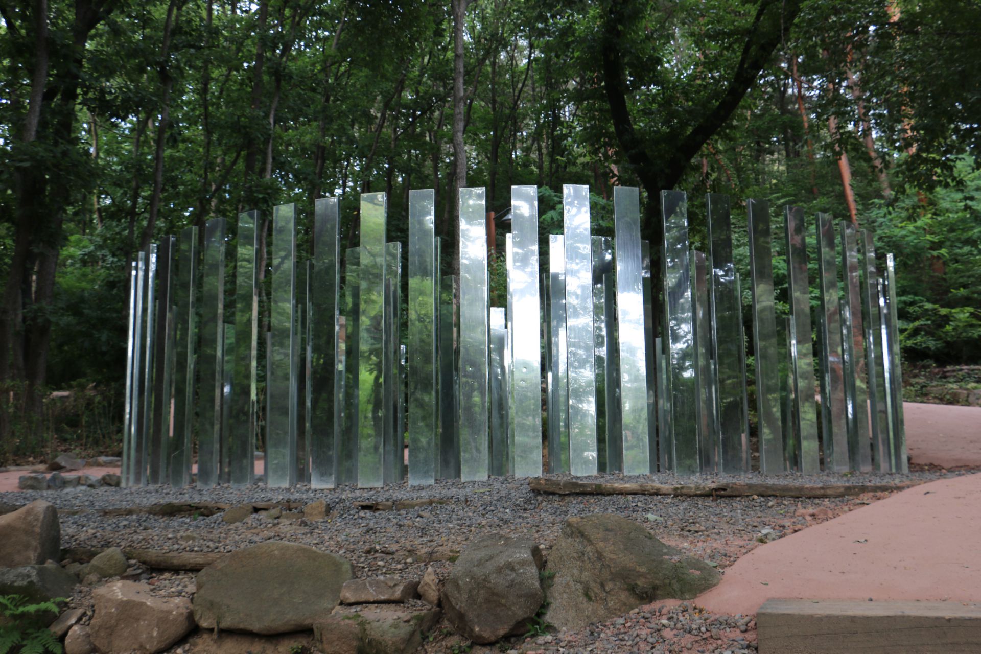 주변의 풍경이 거울에 비춰져서 멀리서 보면 투명작품같이 있는 듯 없는 듯한 느낌을 받게 하는 작품이예요.