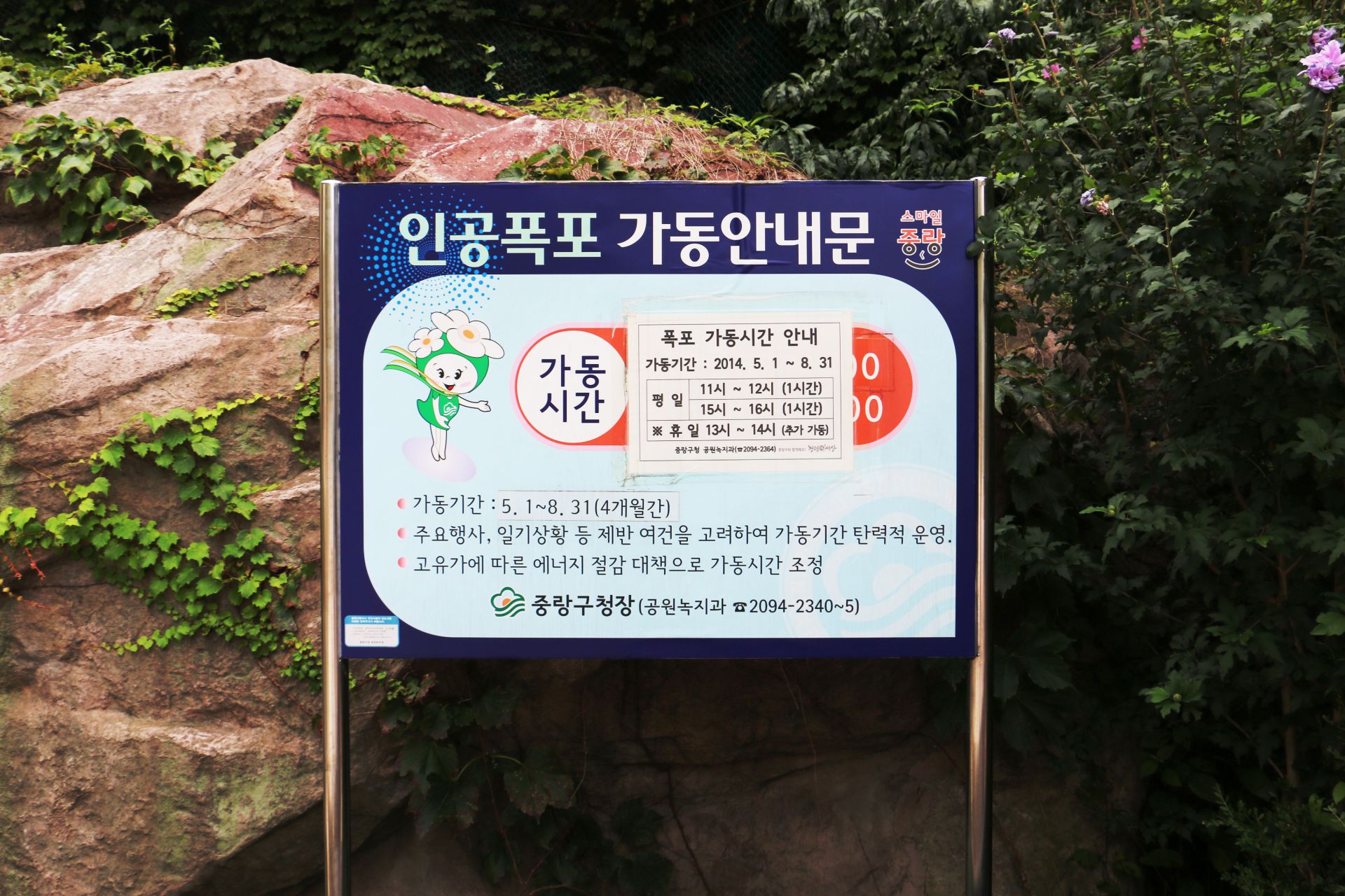 이용전 인공폭포 가동시간을 확인해보면 편리하겠죠?