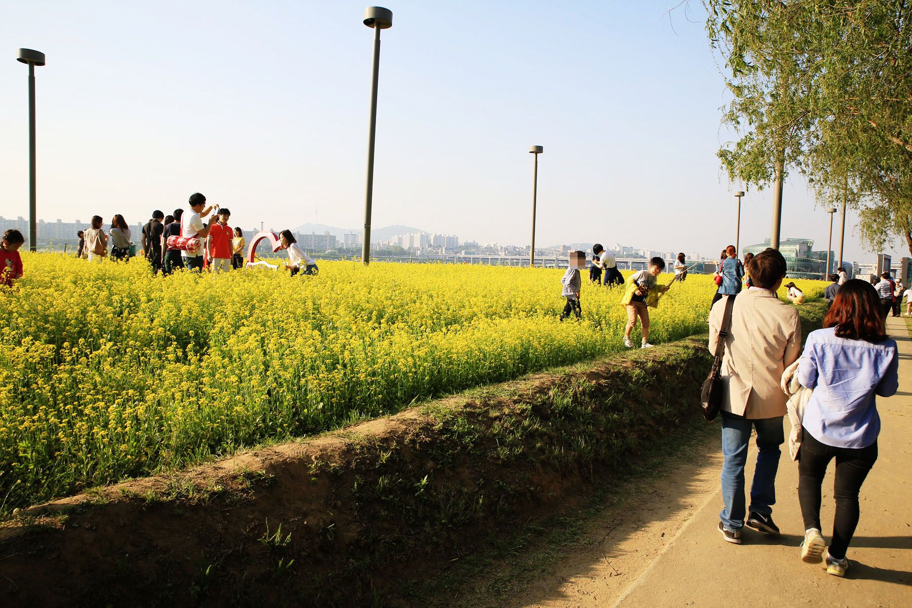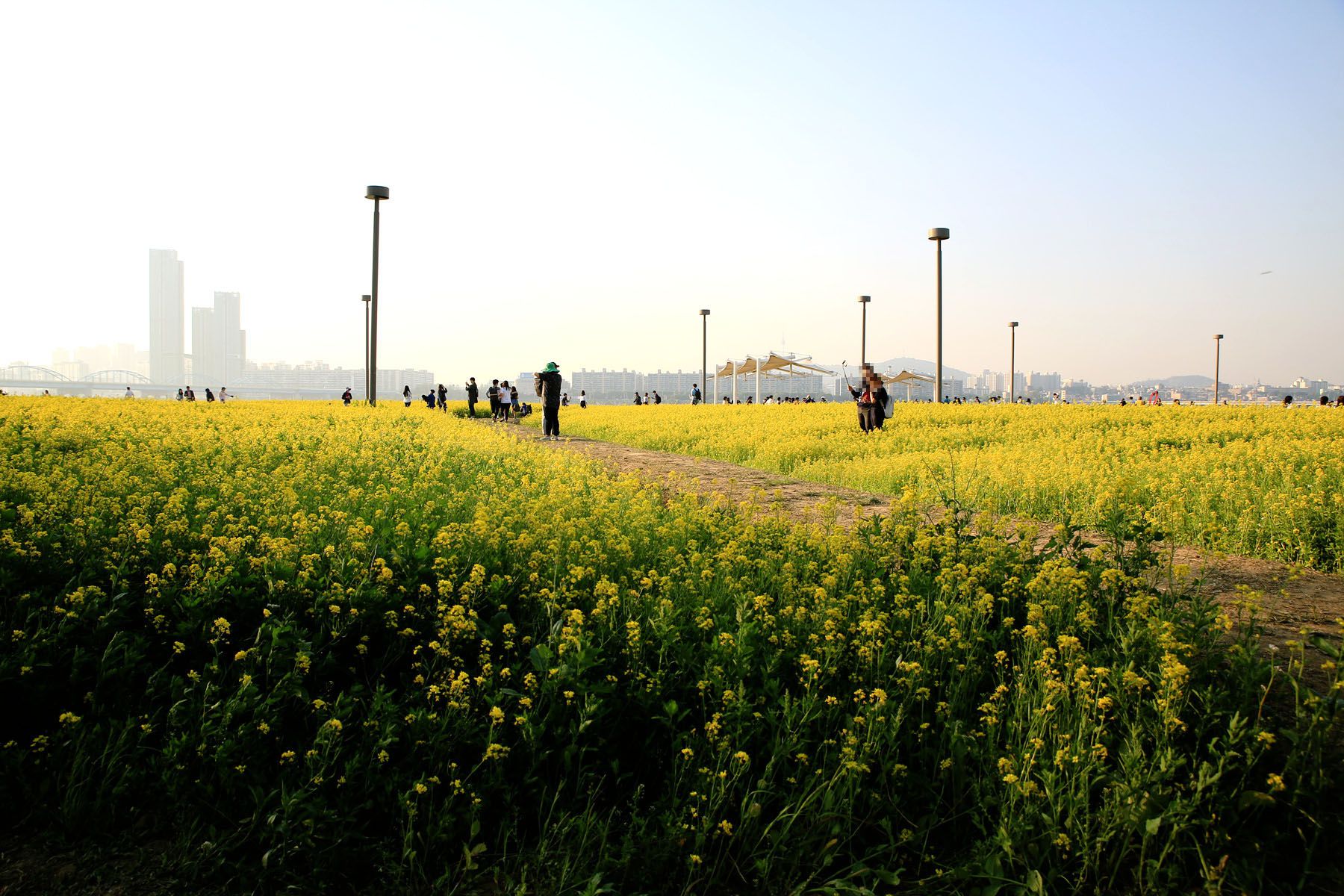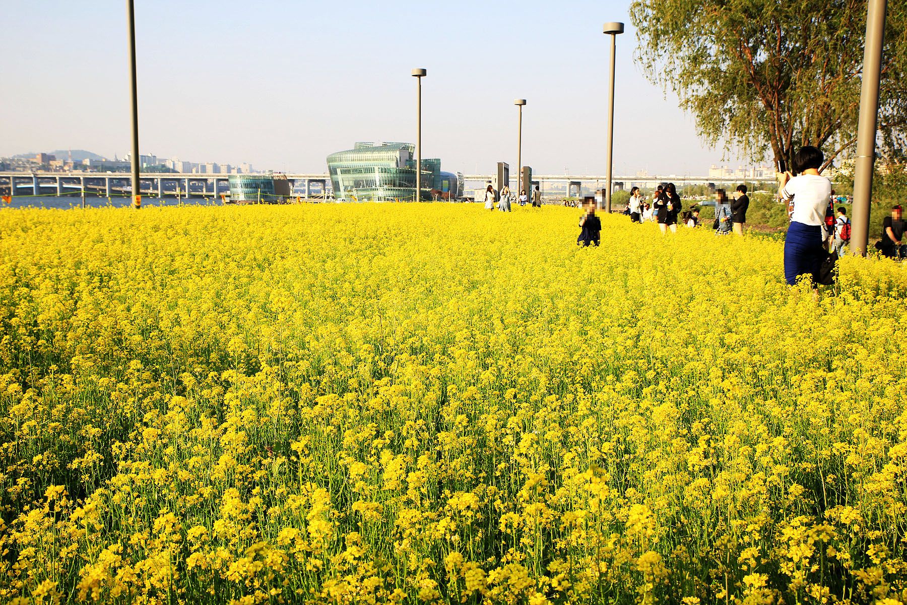 꽃축제 즐기러 멀리 돌아가실 필요없이 서울 도심 한가운데 푸른 한강물과 노란 색깔의 옷갈아 입은 유채꽃을 배경으로
