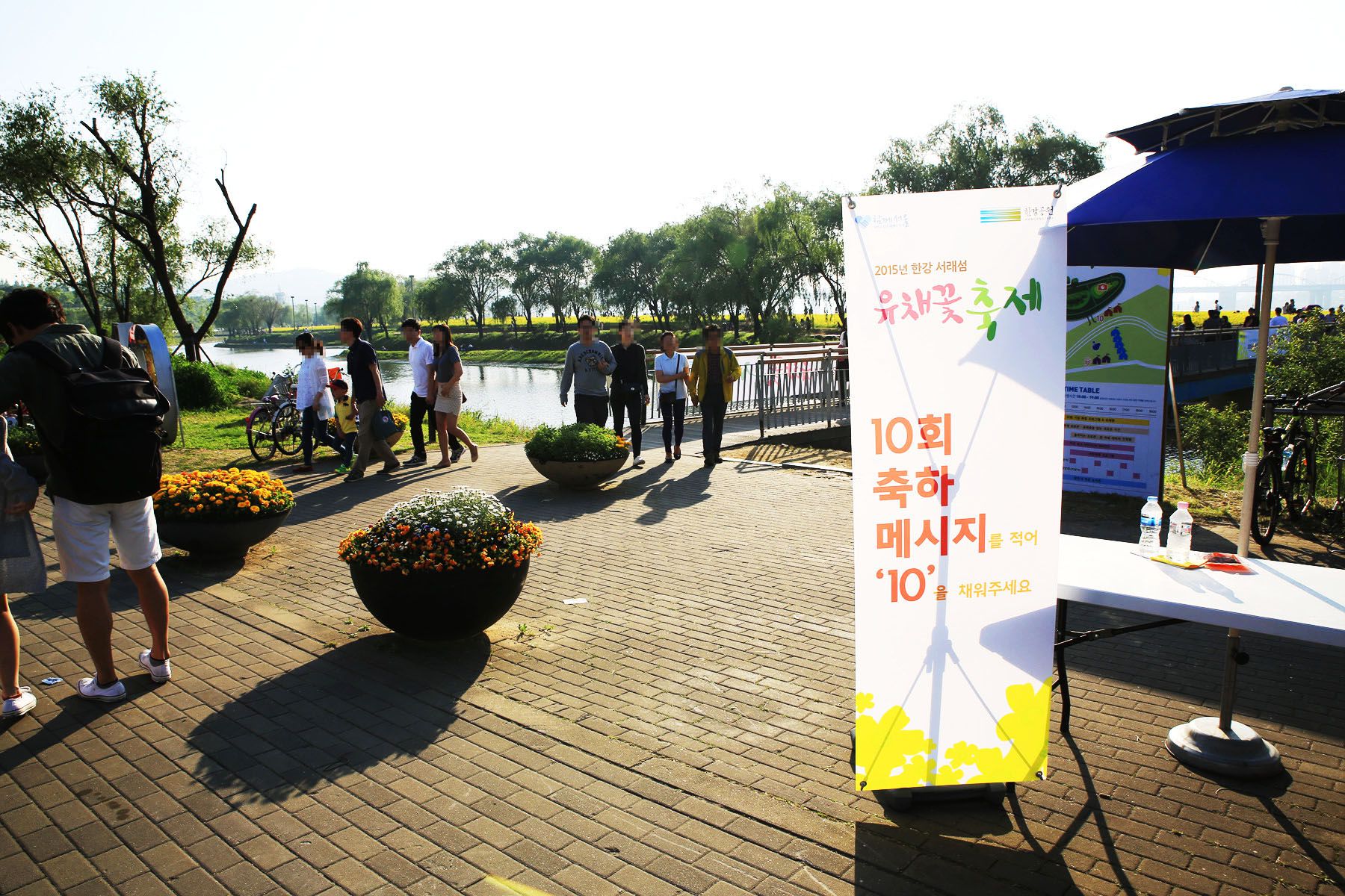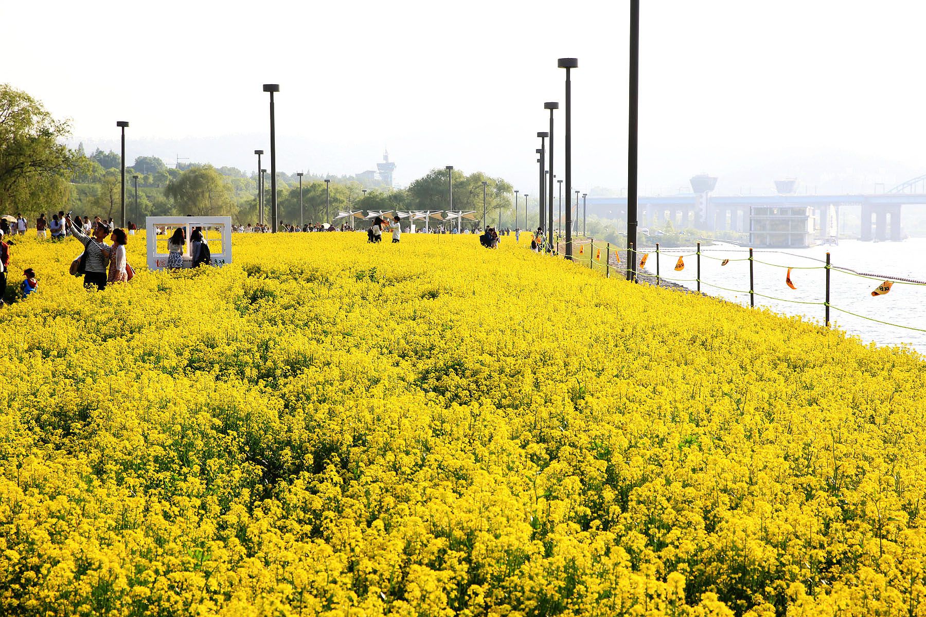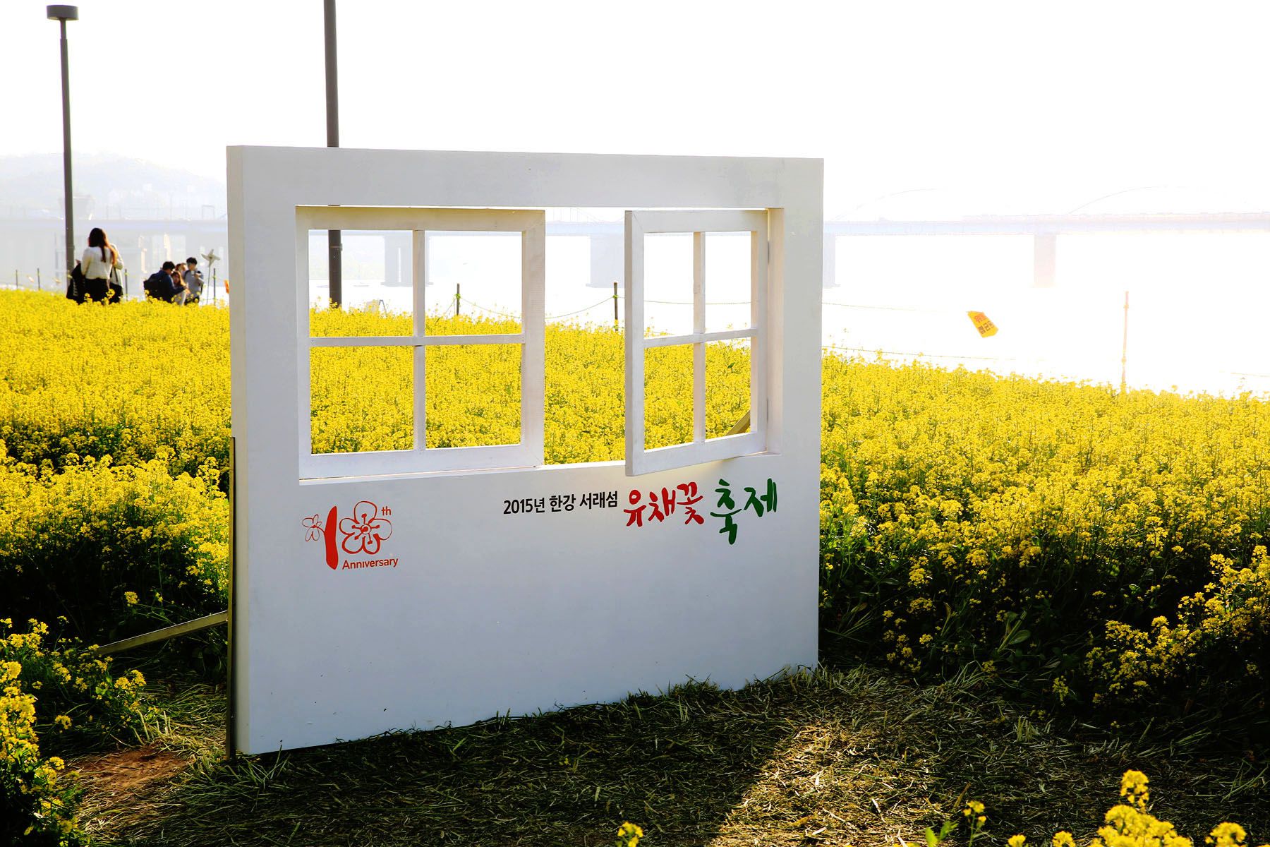 꽃축제 즐기러 멀리 돌아가실 필요없이 서울 도심 한가운데 푸른 한강물과 노란 색깔의 옷갈아 입은 유채꽃을 배경으로