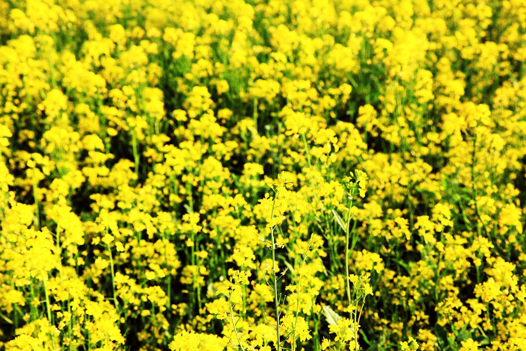 이곳에서는 불어오는 바람에 유채꽃이 넘실거리는 사이 길을 걸으며