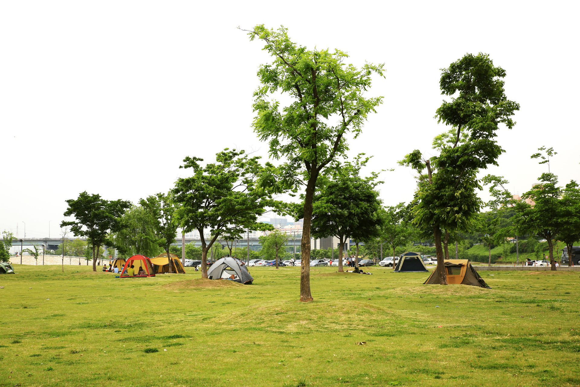 라이딩을 즐기는 사람들, 텐트 속에서 여유롭게 시간을 보내는 사람들로 가득합니다.
