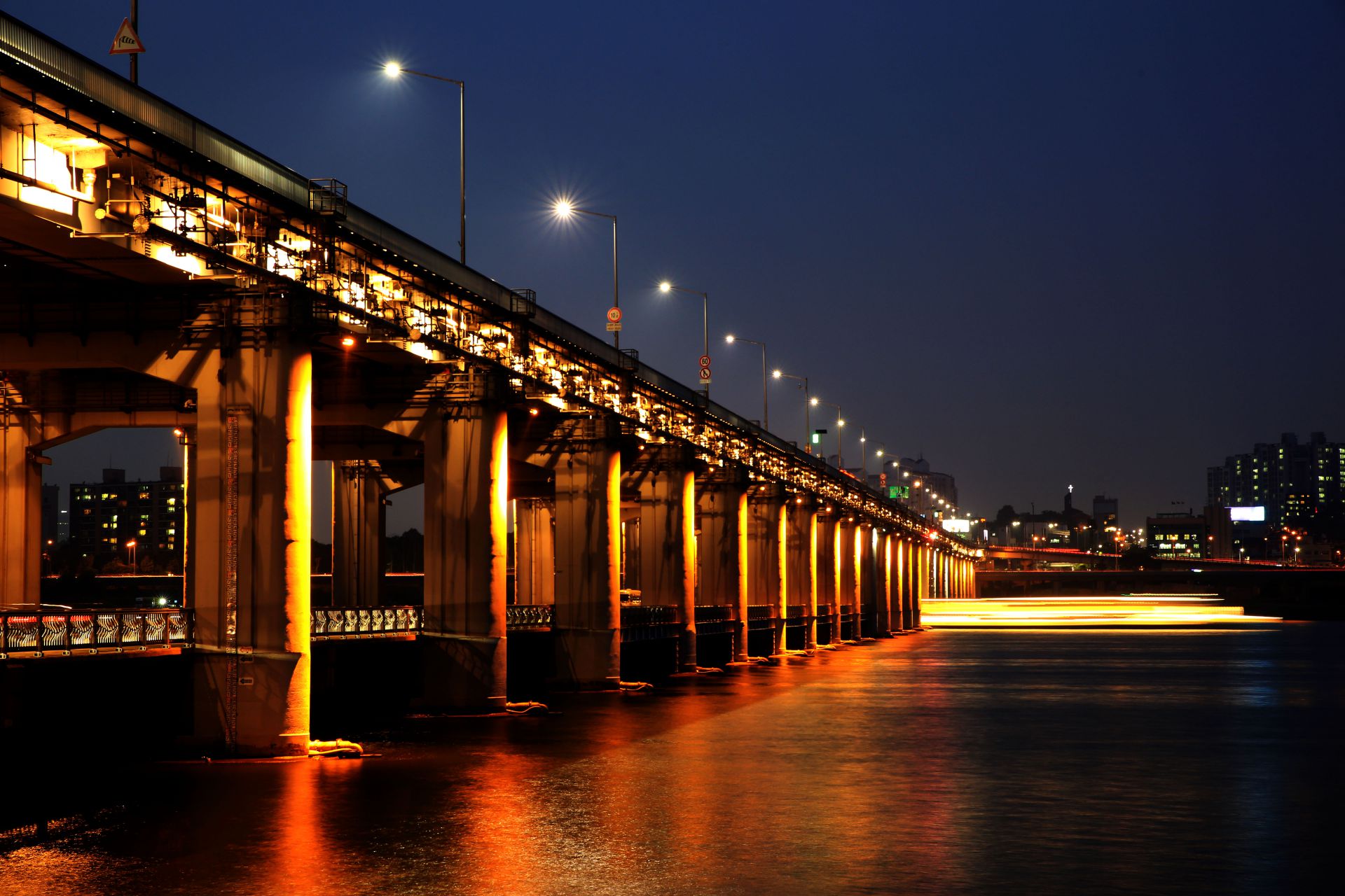 깜깜한 밤이 되면 반포대교는 빌딩 숲과 어우러져 아름다운 풍경을 연출합니다.