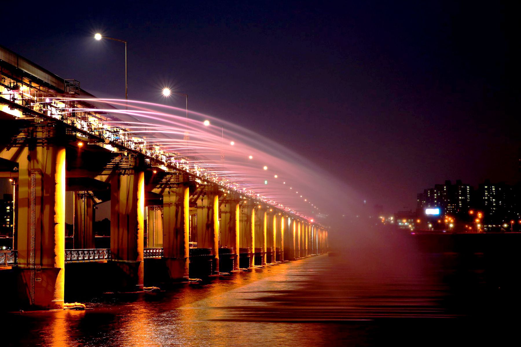 교량 양쪽으로 설치된 달빛무지개분수는 총 길이 1,140m로 2008년 세계에서 가장 긴 교량분수로 세계기네스협회에 등재되어있습니다.