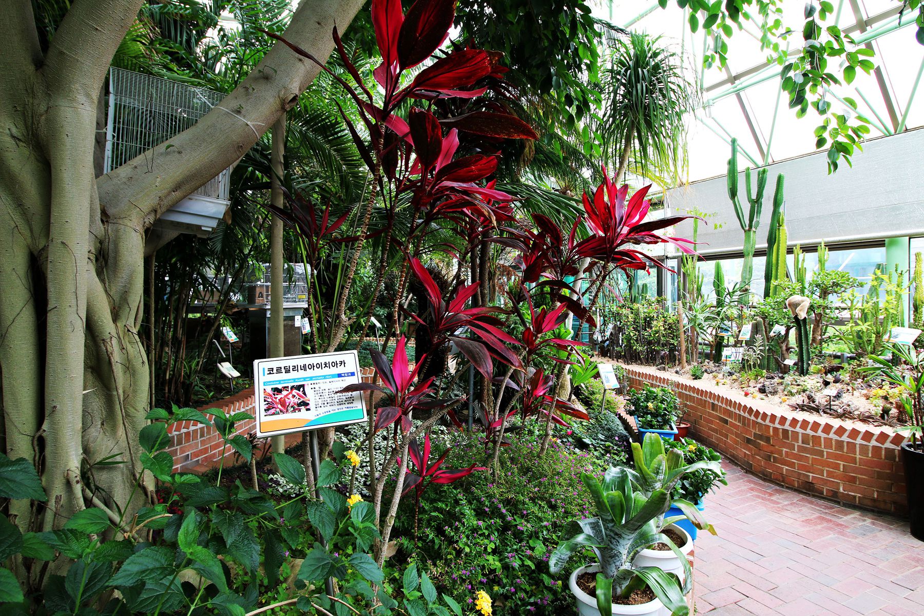 열대식물로 구성되어 사계절 다른모습을 볼 수 있으며 각종 선인장류와 야자류 초화류등 3천여점이 전시되어있습니다.