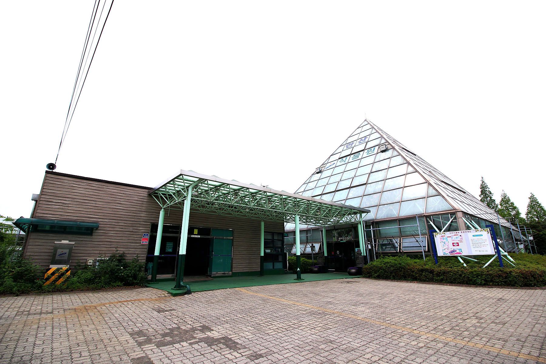 열대식물원은 피라미드형 유리온실로 온실의 모든것은 컴퓨터에 의해 자동조절되는 최첨단 시설입니다.
