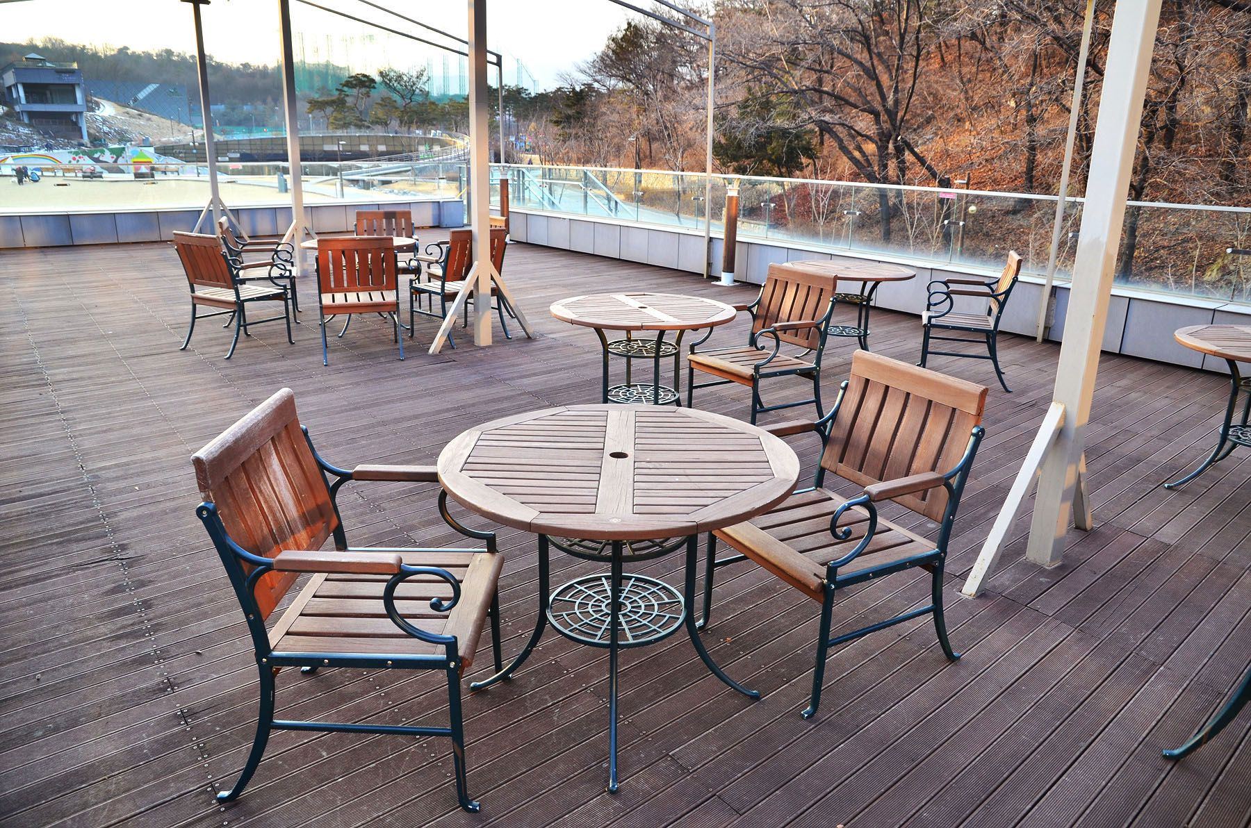 주변의 풍경이 한눈에 보이는 2층 테라스에서는 가볍게 차를 한잔 하면서 잠시 휴식하는 시간을 갖을 수 있습니다.