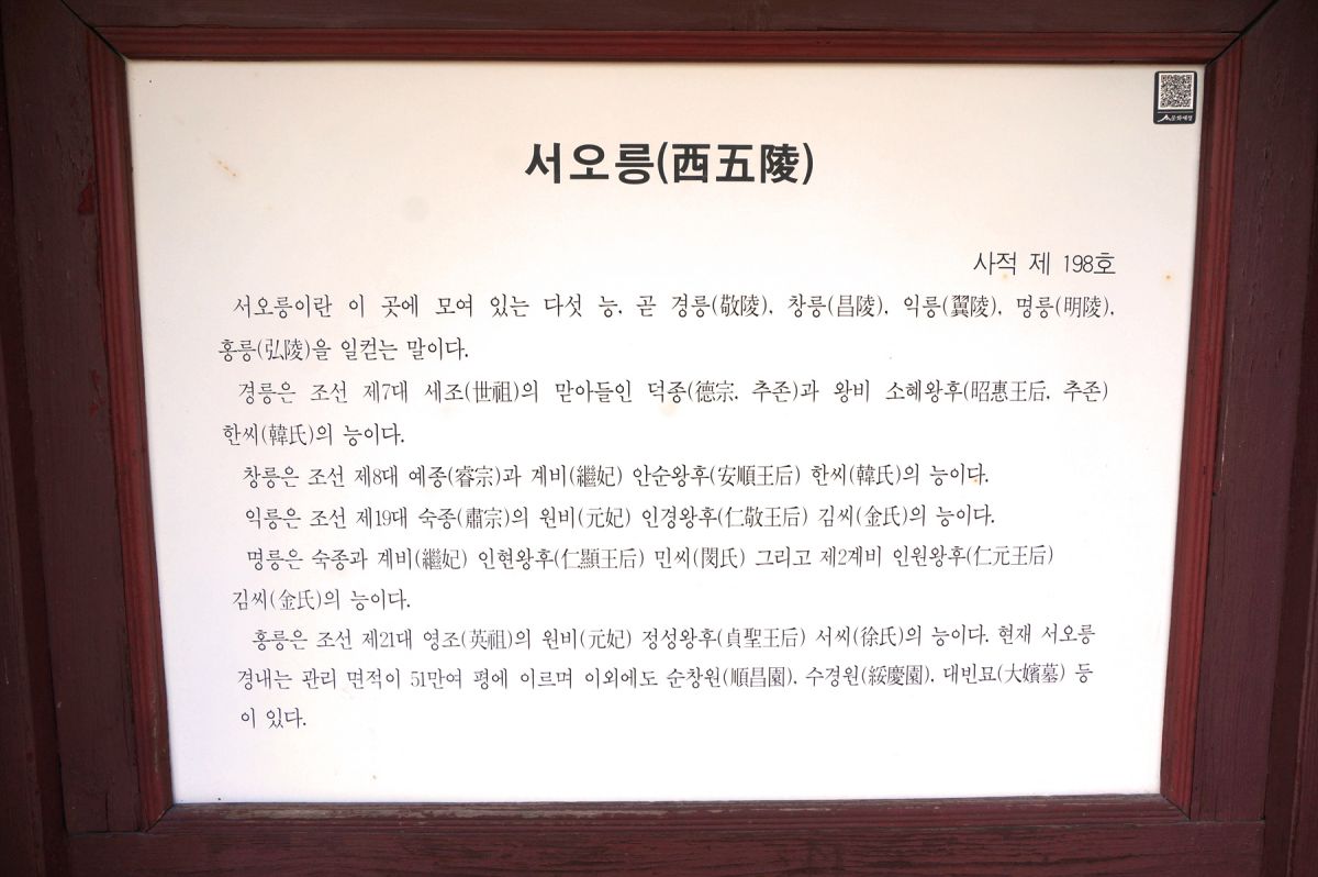 동구릉에 이어 두번째로 큰 규모인 서오릉에는 경릉, 창릉, 익릉, 명릉, 홍릉이 있고