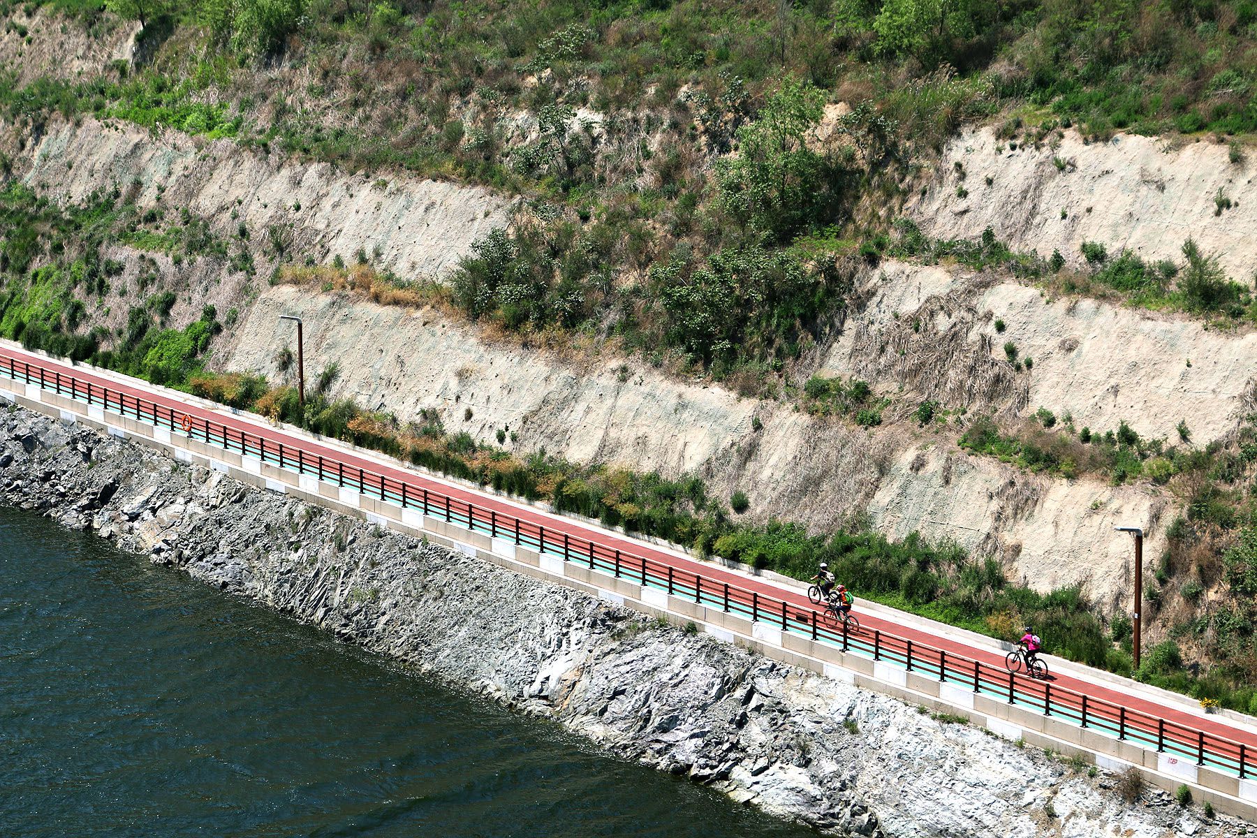 시원한 바람을 맞으며 신나게 자전거도로를 달리 자전거 라이더의 모습도 보입니다.