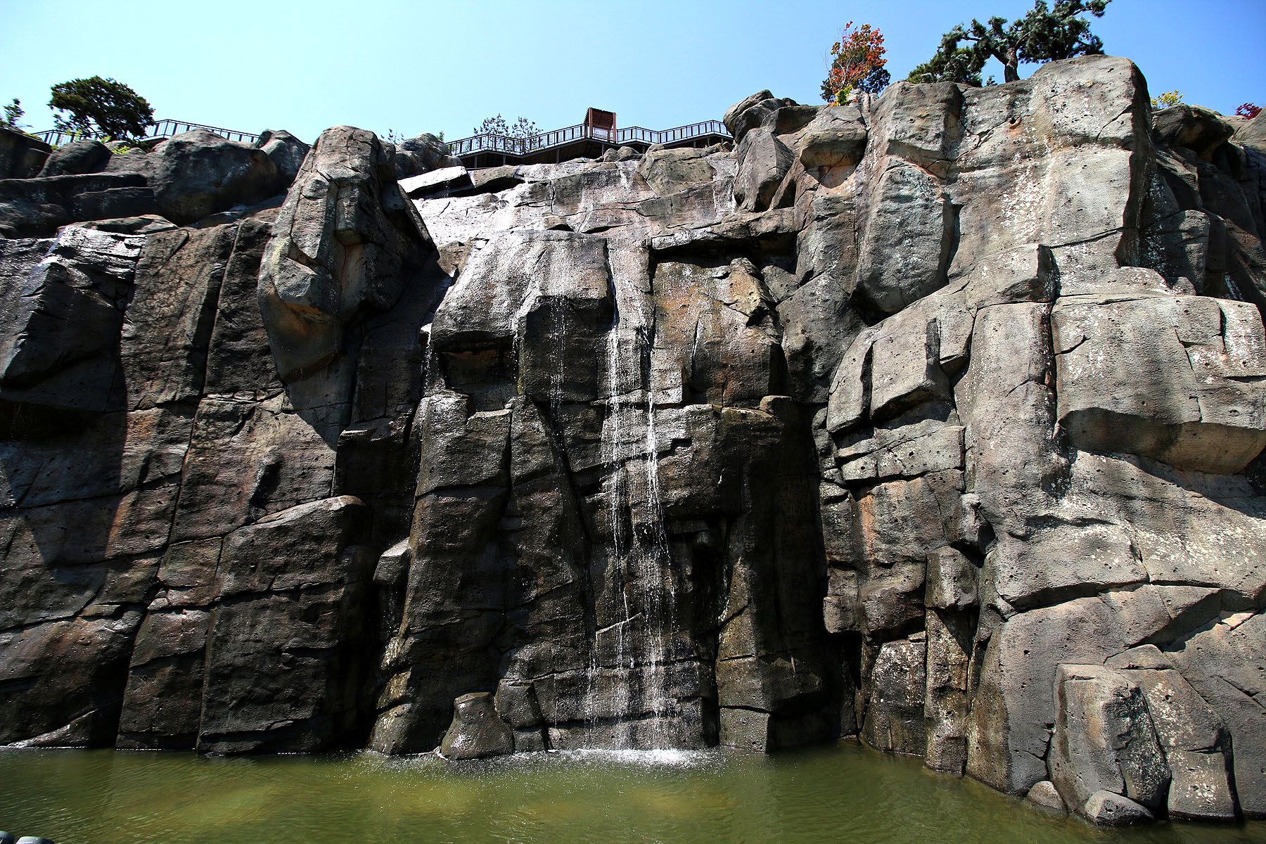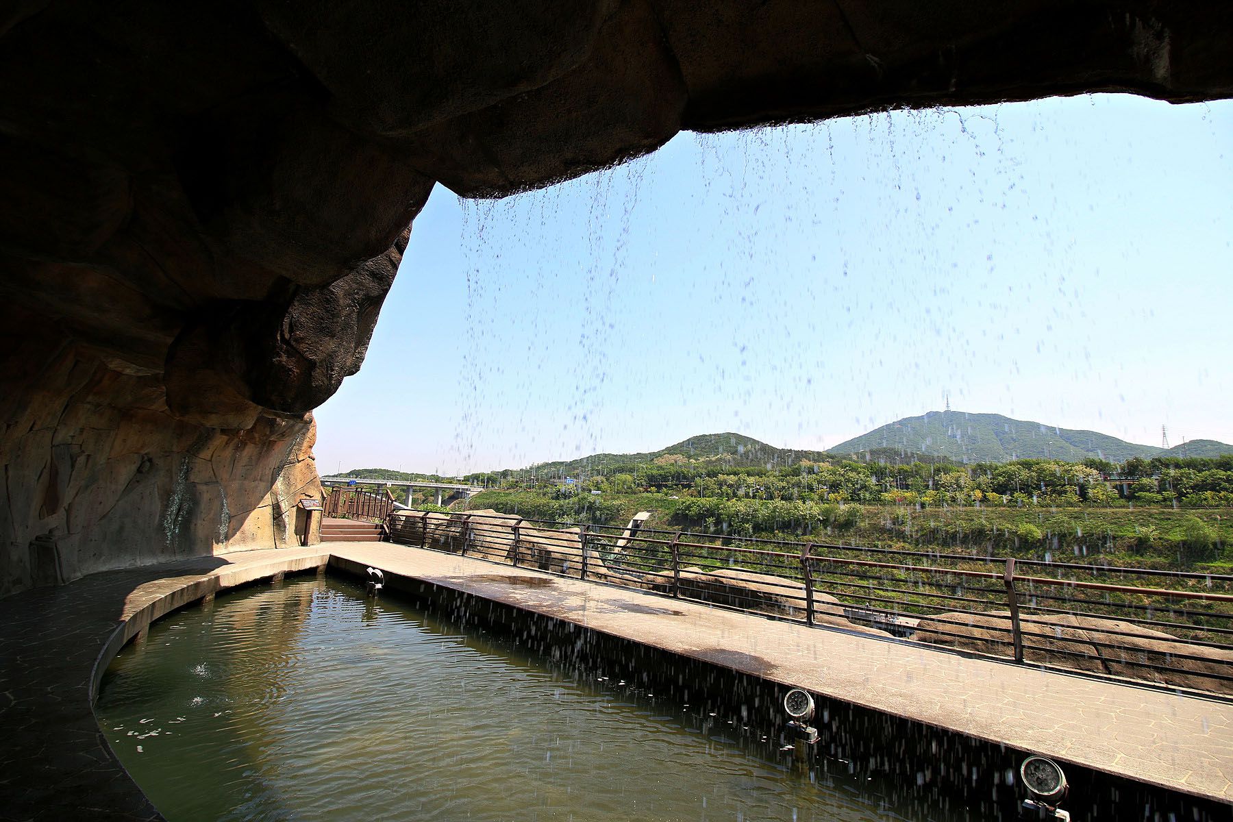 아라폭포가 가동될 때는 물보라가 발생하기에 옷이 젖을 수 있습니다.