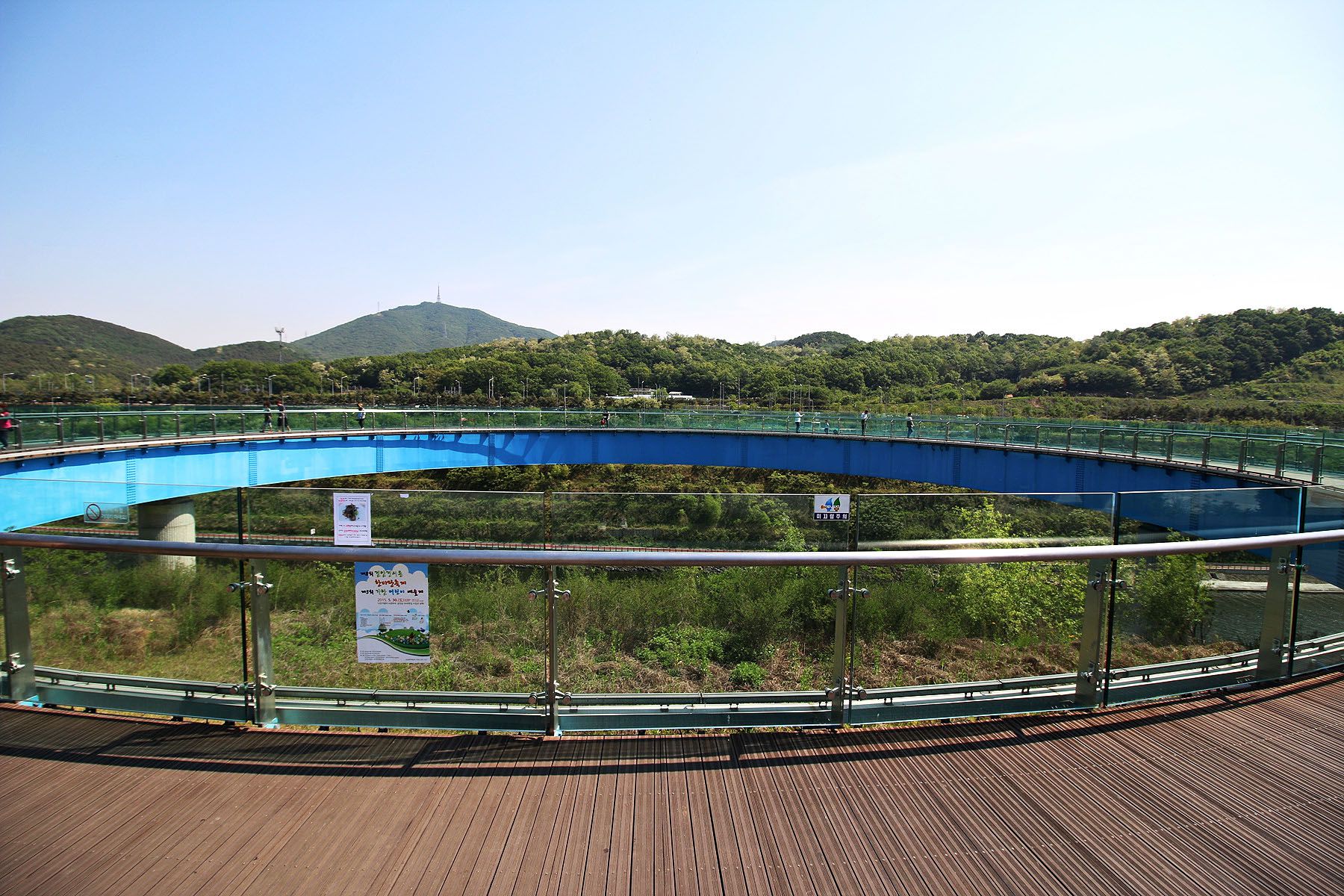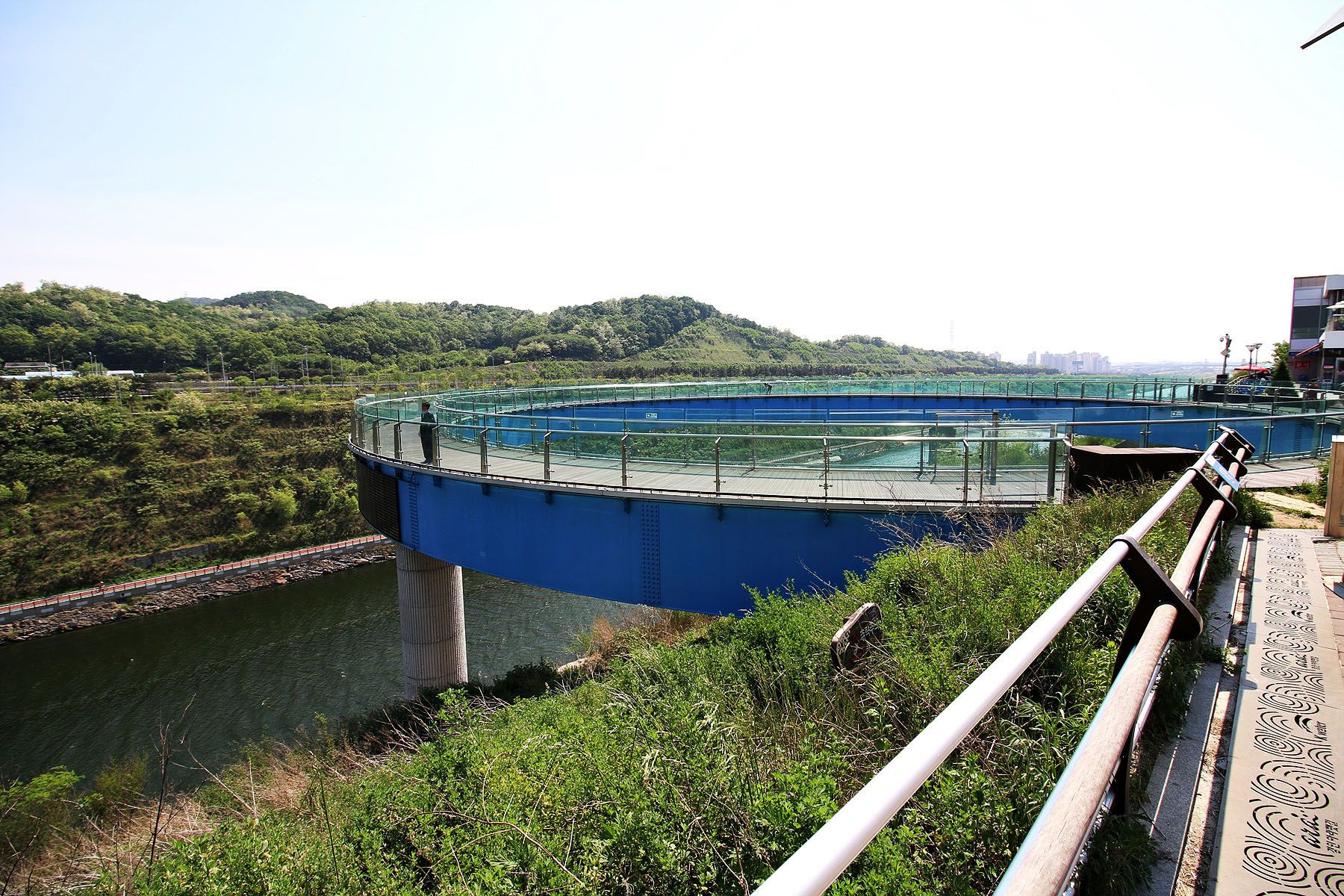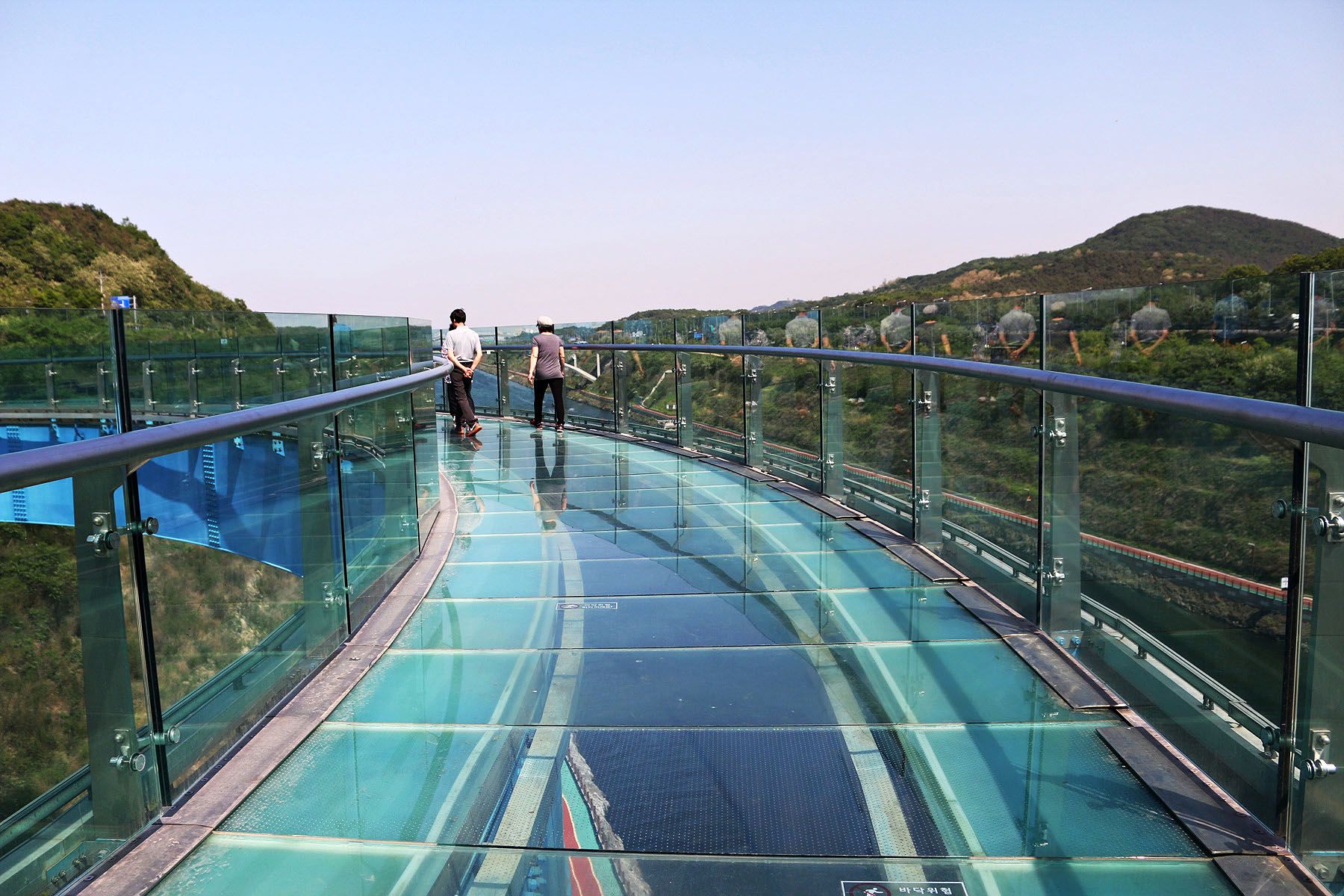 유리바닥으로 전당대 아래의 아라뱃길이 보이기에
