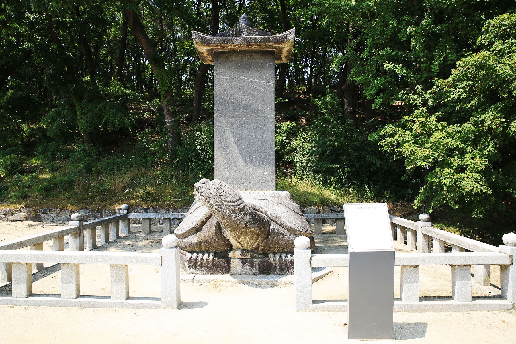 비의 기단석의 몸통은 거북이 형상이며, 머리는 용의 모양으로 오른쪽으로 틀어져 묘소를 향하고 있는데 이곳에서 150m지점에