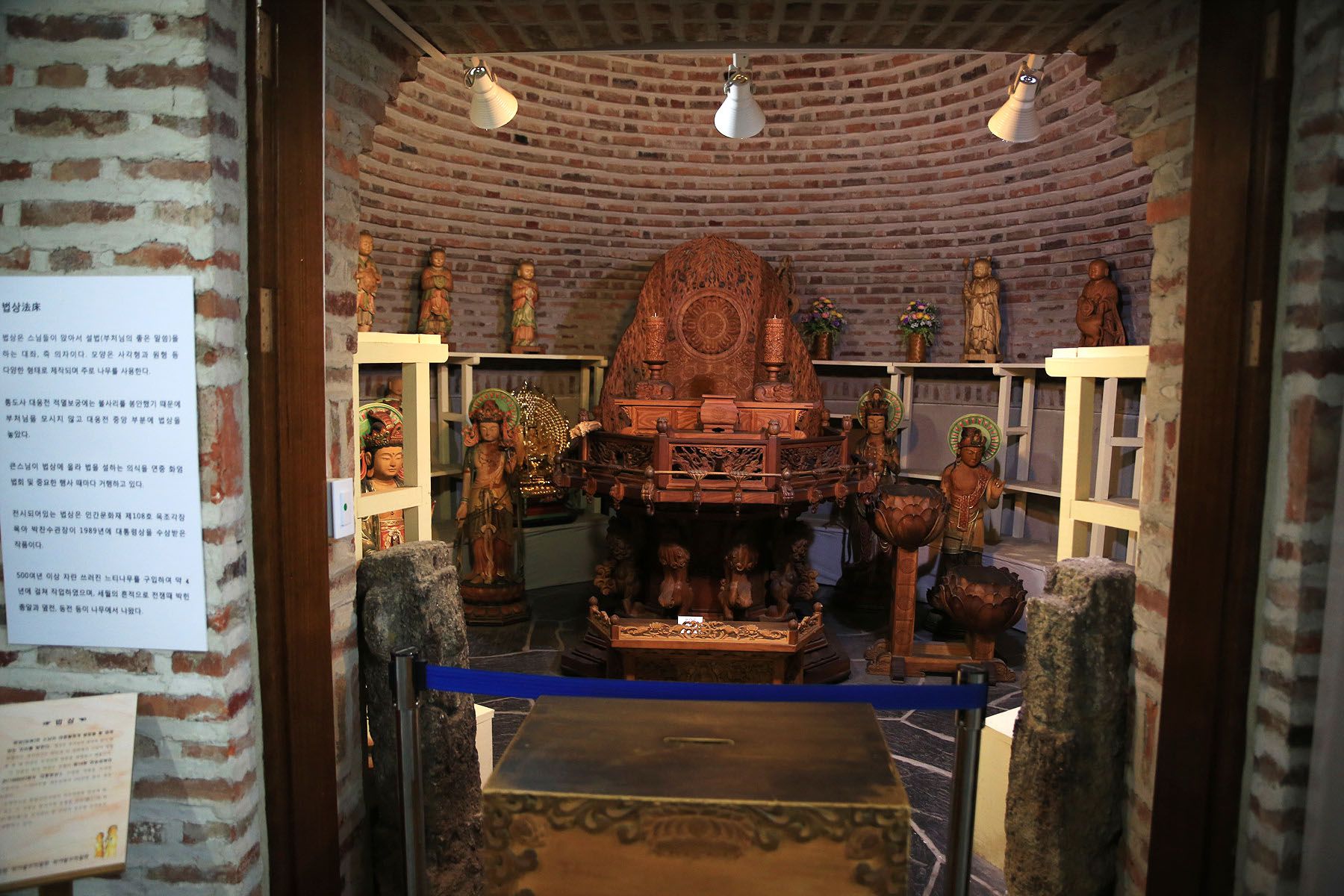 본관3층으로 불교 목조각실은 목아 박찬수 선생의 50여년간의 작품활동의 대표작들이 전시되어 있으며,