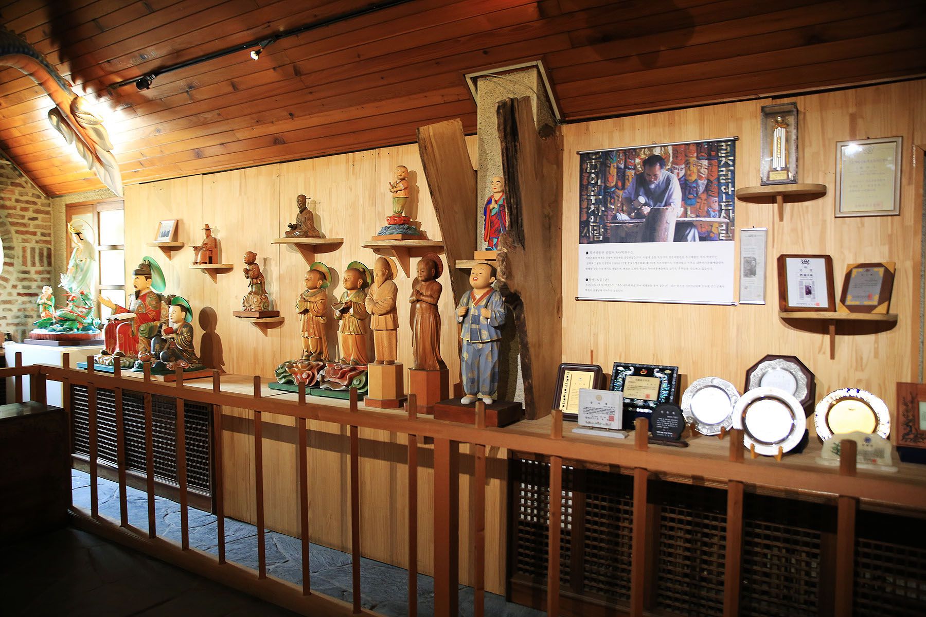 목조각으로 투박함과 정교함을 함께 볼 수 있는 목아작품실에서 신비를 느끼게 하고 어떻게 이렇게 정교한 목조각이