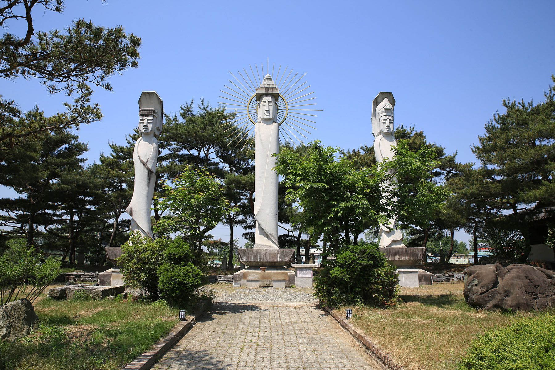 불교에 관한 불상이나 마음의 문 앞에 자리한 다양한 석조물등 많은 작품들도 있지만 천주교의 작은 교회같은 곳과 십자가도 있어서
