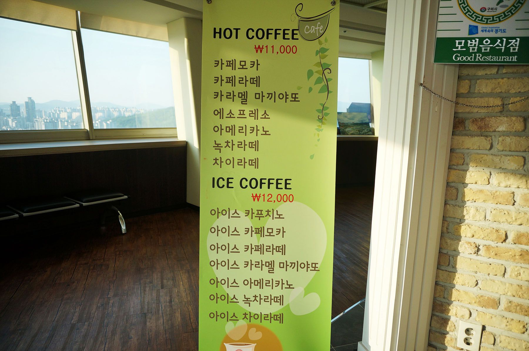 전망대 1층에는 지상으로부터 80m 높이에 위치해 있고 48각의 유리와 망원경을 통해 서울외곽순환고속도로의 구리 요금소,한강,남한산성 등을 볼수 있습니다.