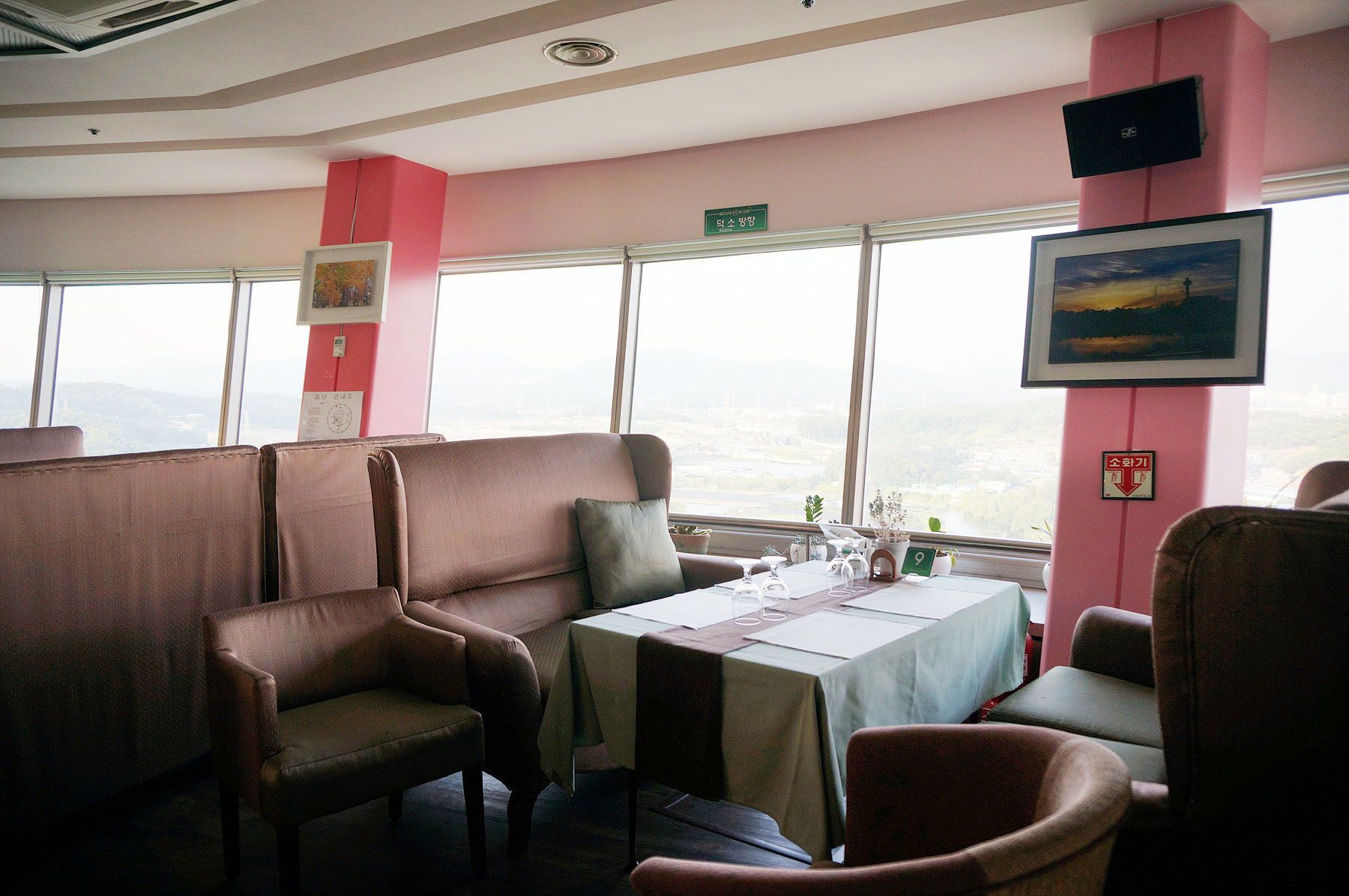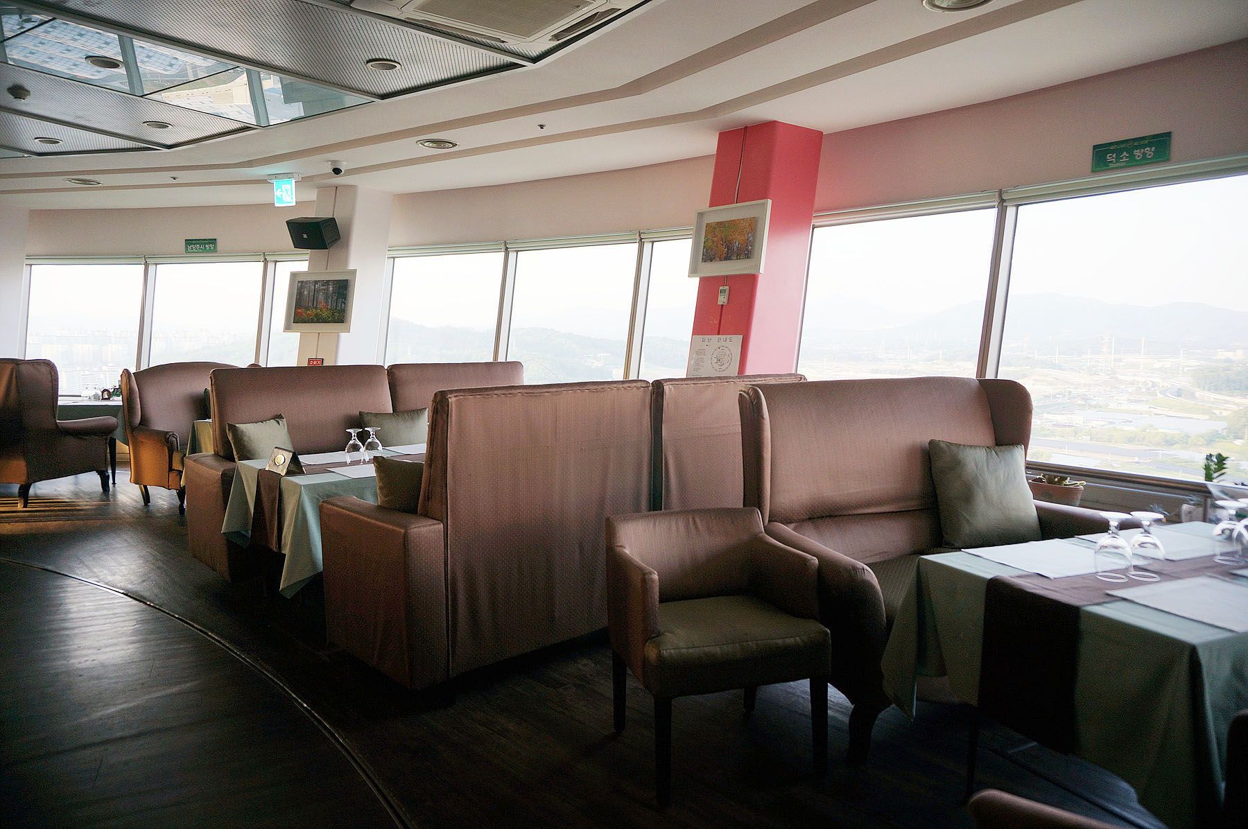 전망대2층에는 지상으로부터 100m 높이이며 회전식 레스토랑이 있어 식사를 하며
