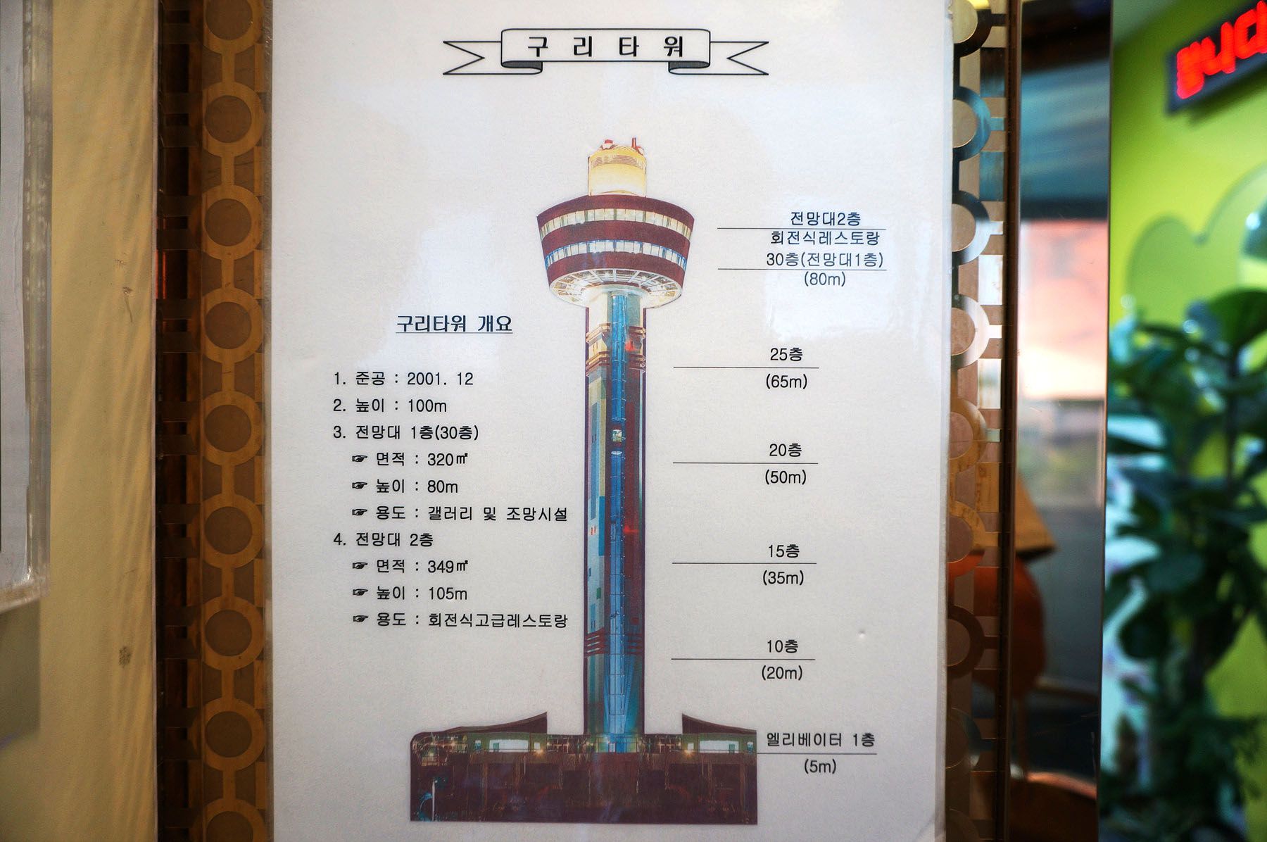 1,2층에는 전망대와 레스토랑이 있고 1층 주변에는 주민들이 이용할수 있는 실내수영장,축구장,게이트볼장 등의 여가시설이 있습니다.
