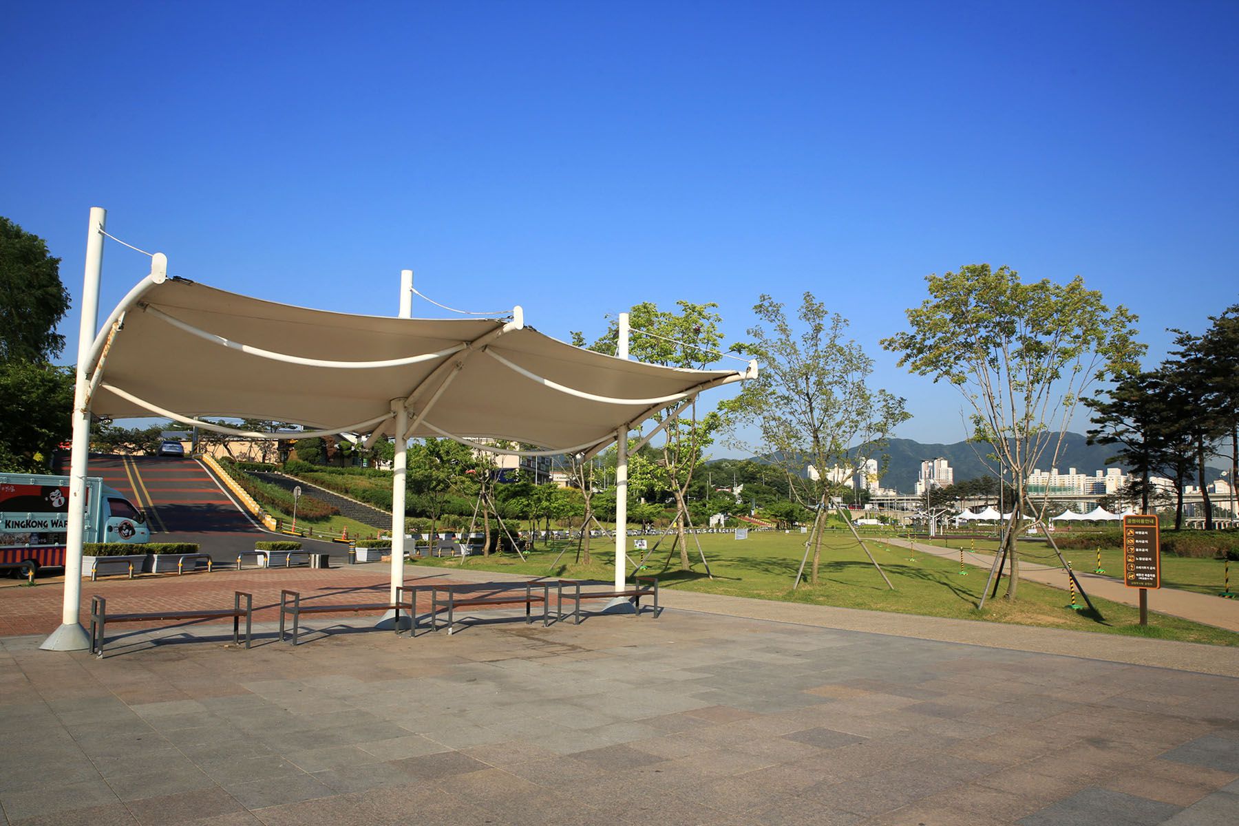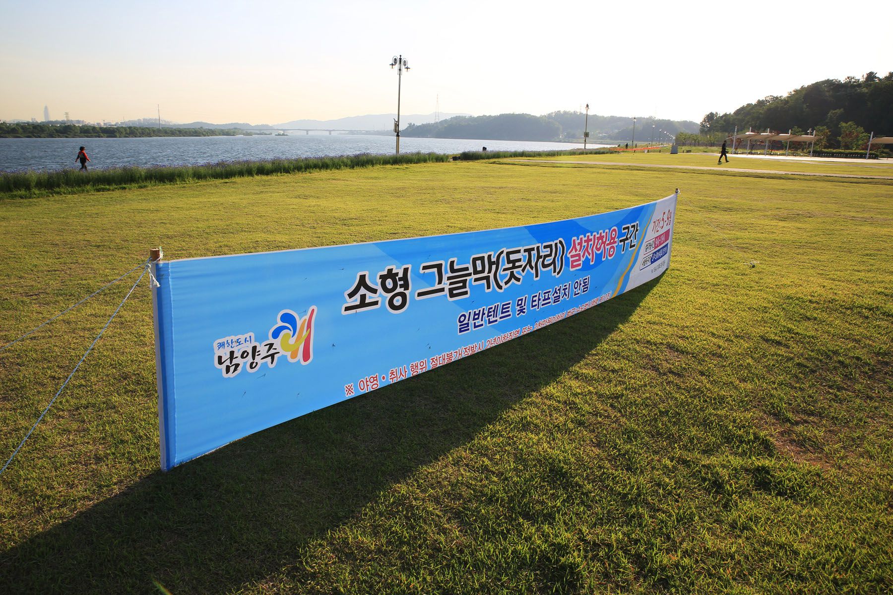 넓은 잔디밭의 소형그늘막 설치허용구간에서는