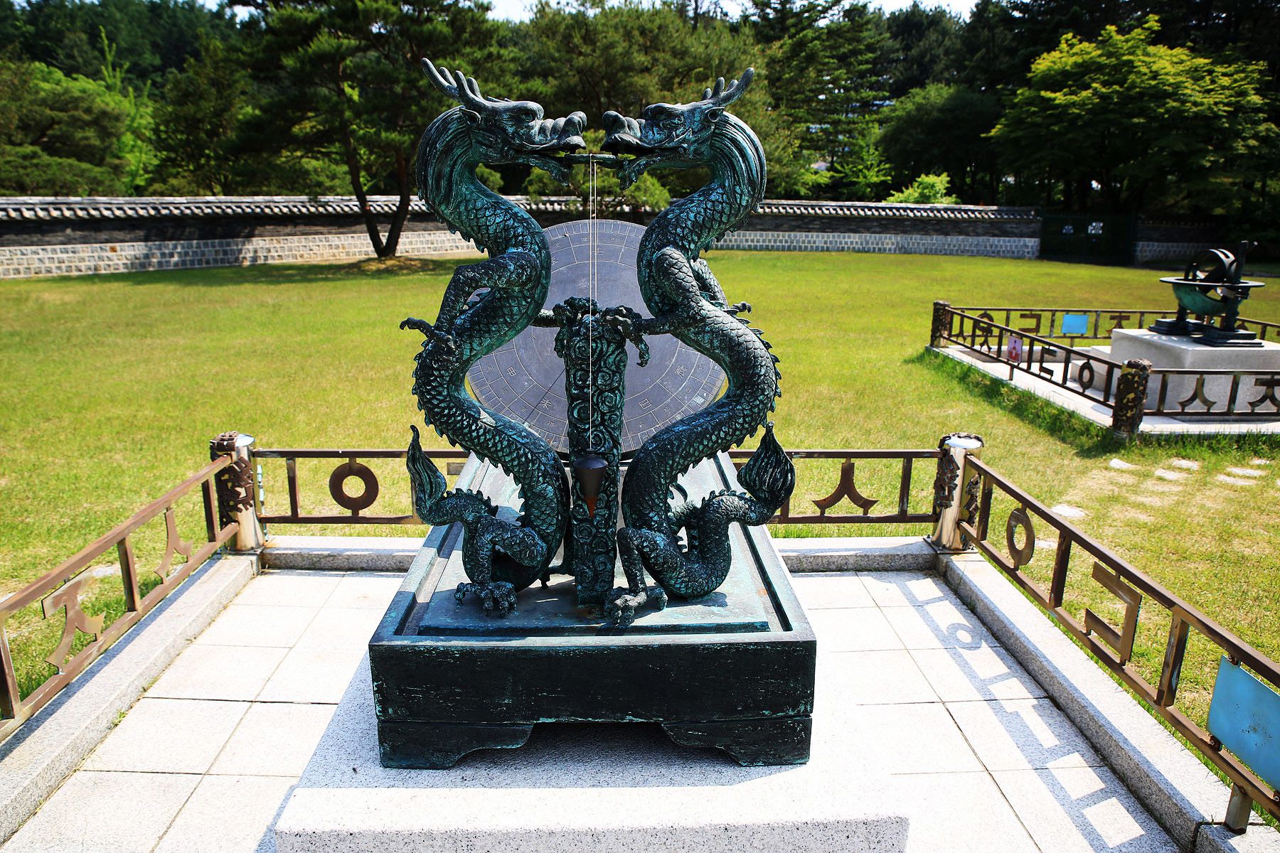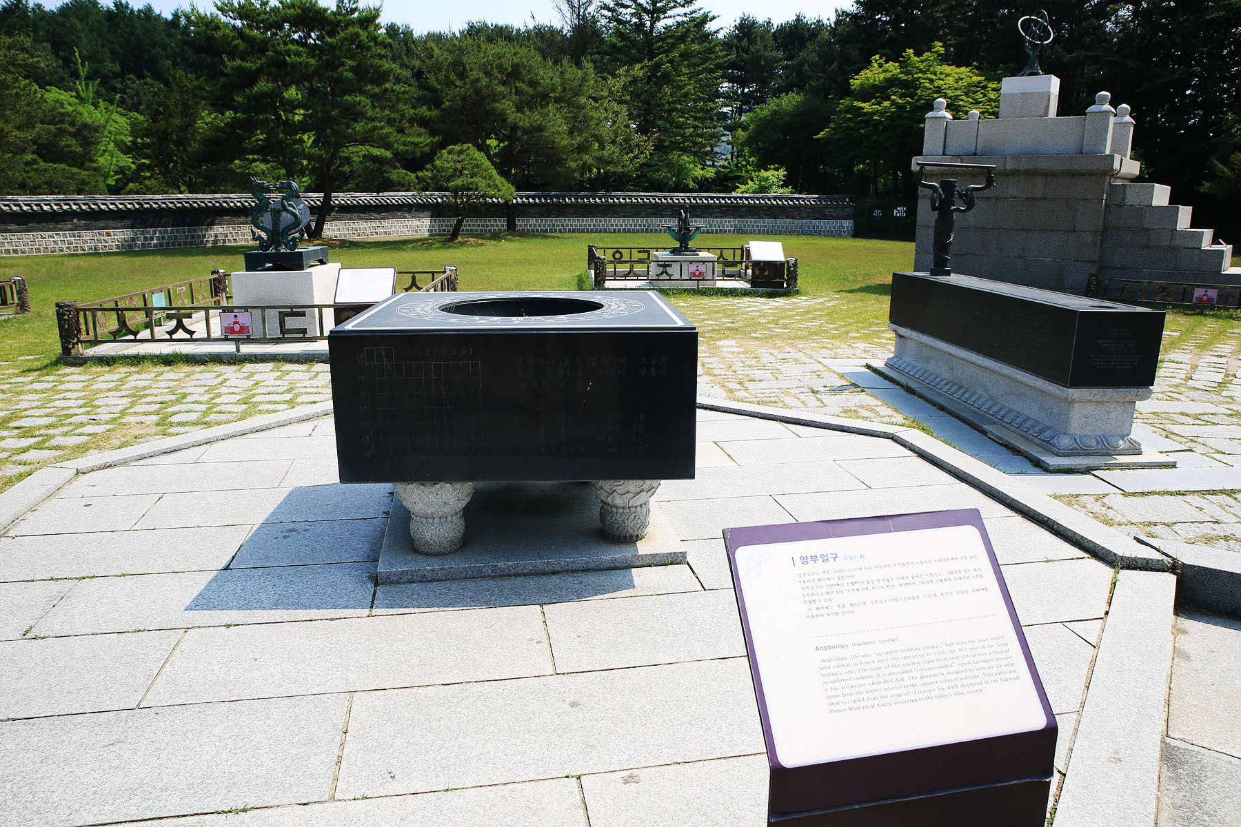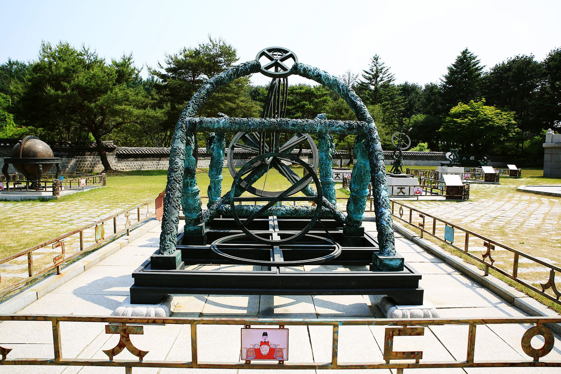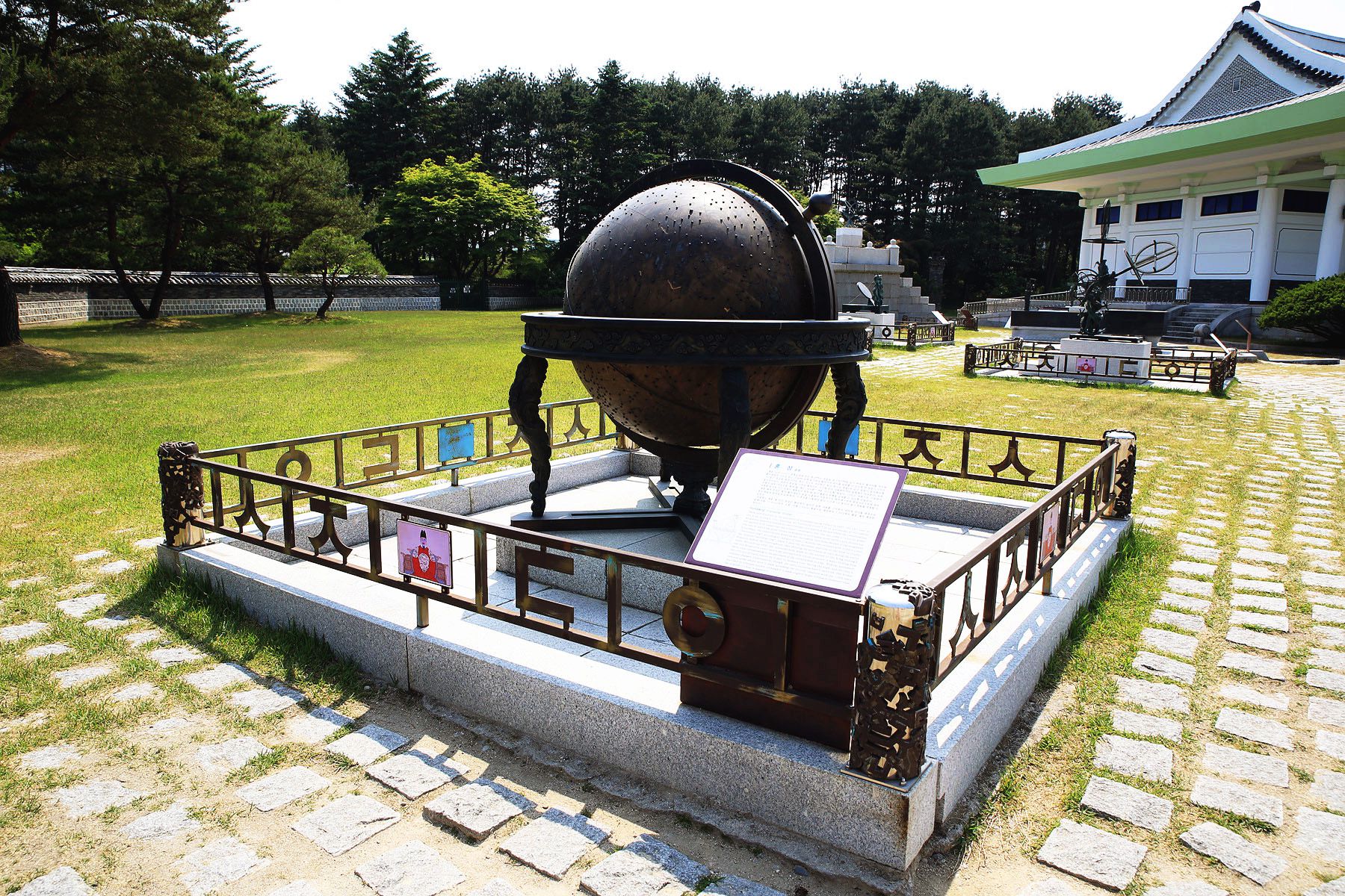 세종전 앞 잔디밭에는 혼천의, 앙부일구(해시계), 간의(천문관찰기구) 등이
